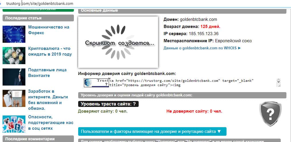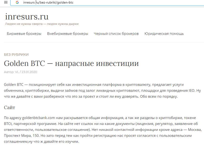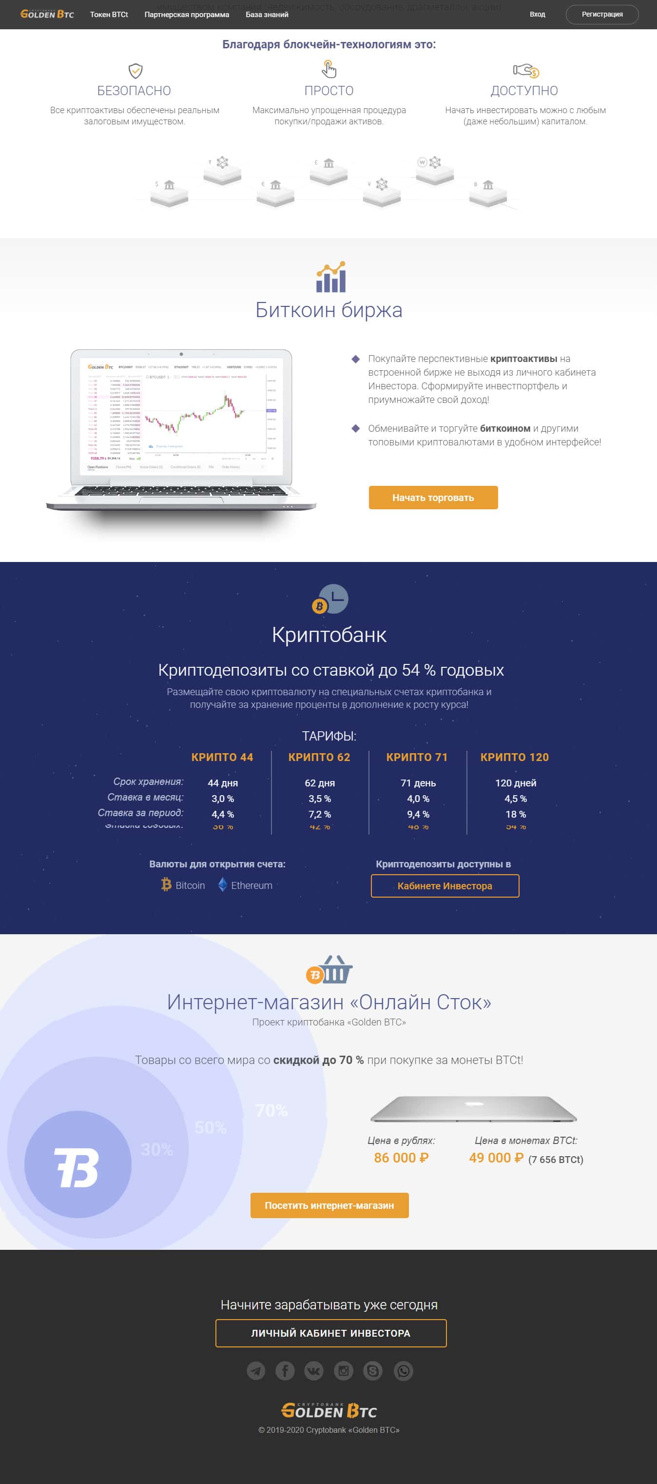 goldenbtcbank com - официальный ресурс лохотрона 1 БТЦ Брокер