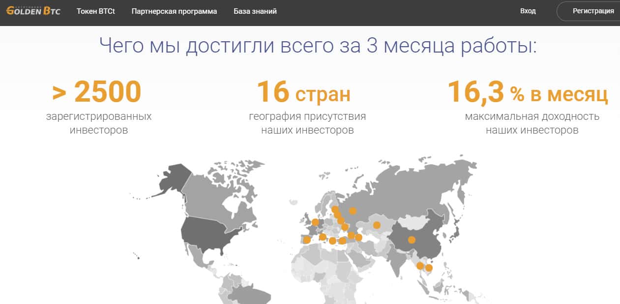 Криптовалютная контора 1BTCBroker на своем ресурсе выложила информацию, что за 3 месяца существования, они смогли распространили свою деятельность на 16 стран мира и уже в этом хайпе варится свыше 2500 клиентов. Конечно же это все неподтвержденный фейк, который укореняется информацией о доходности в месяц.