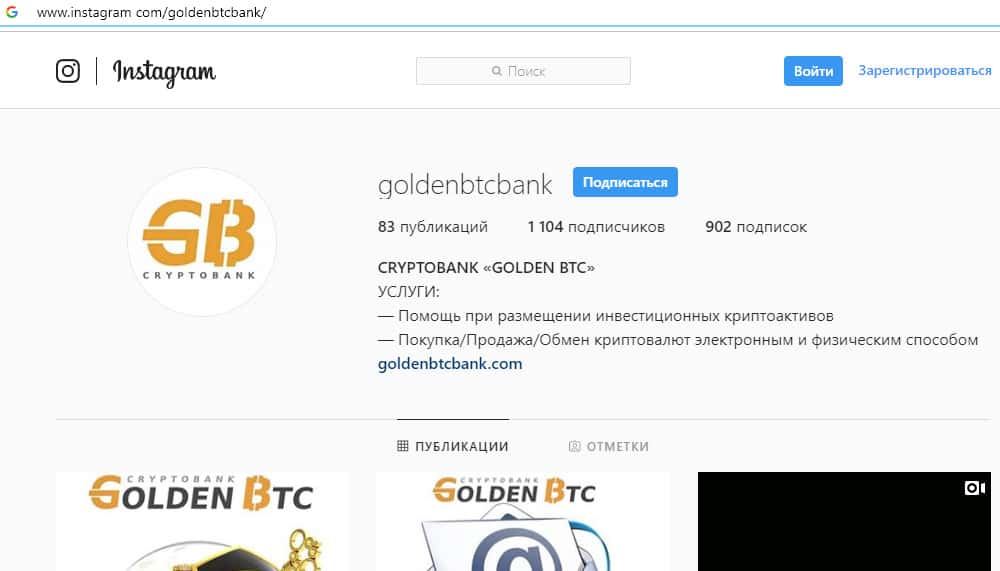 В социальной сети Инстаграм, также есть у лохотронщиков 1 БТЦ Брокер раздутая страница, которая собрала уже свыше 1000 подписчиков. Как обычно это тупые боты, и надеемся что среди этого количества лишь малая доля живых людей. А вот ссылка на этот аккаунт instagram com/goldenbtcbank