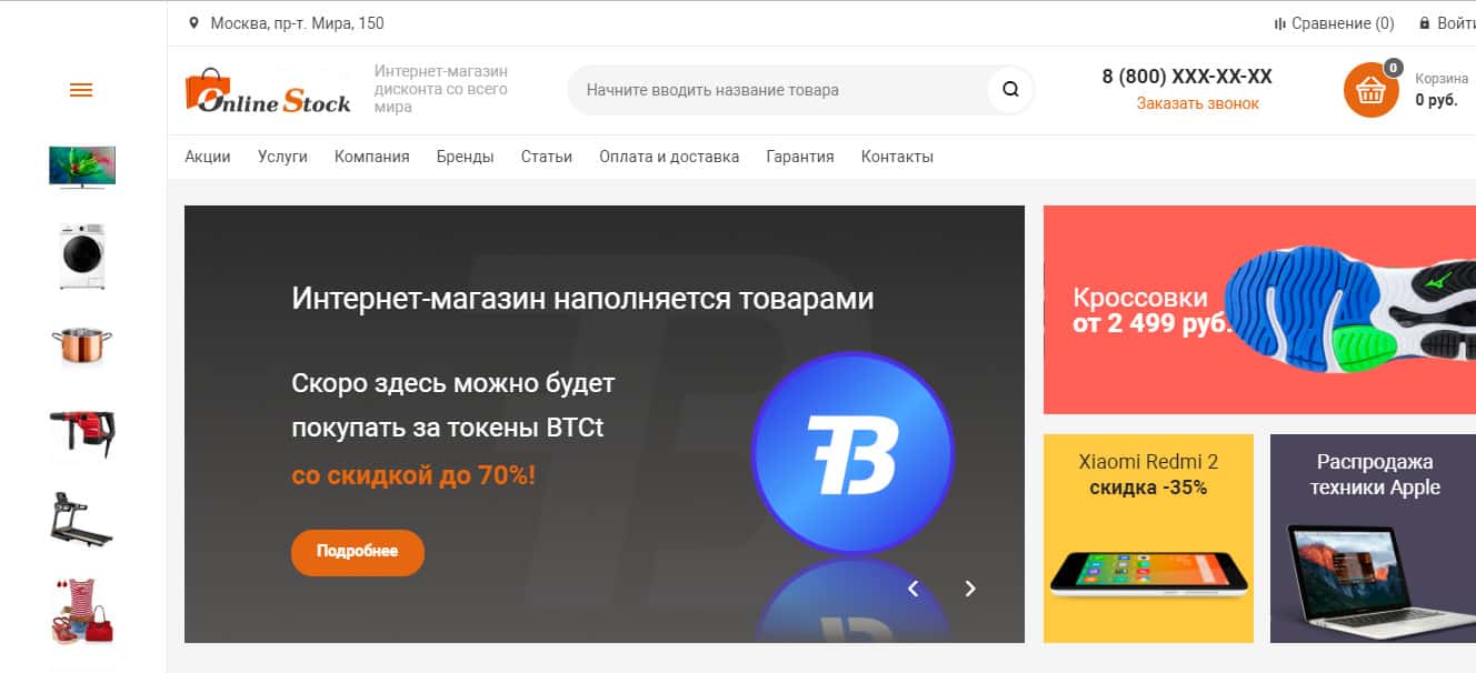 Для тех кому не вкатила тема с биржей, инвестированием и хайп-депозитом, есть еще одна замануха в виде интернет-магазина стоковой техники, где якобы за их токены можно купить ее в два раза дешевле. Но опять же нет фактов подтверждения реальных операций и нет гарантии, что это вообще не развод.