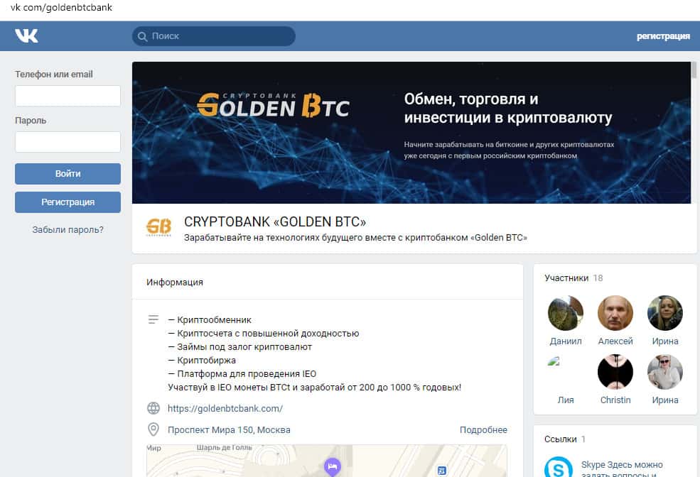 И напоследок, мошенники 1BTCBroker уготовили нам ознакомиться с социальной сетью ВКонтакте и соответственно там особо никто не клюнул. Это означает, что среди русскоязычного населения тема не пошла и люди стали больше понимать, что в интернете много развода, в том числе и 1 БТЦ Брокер. Группа в Вконтакте vk com/goldenbtcbank