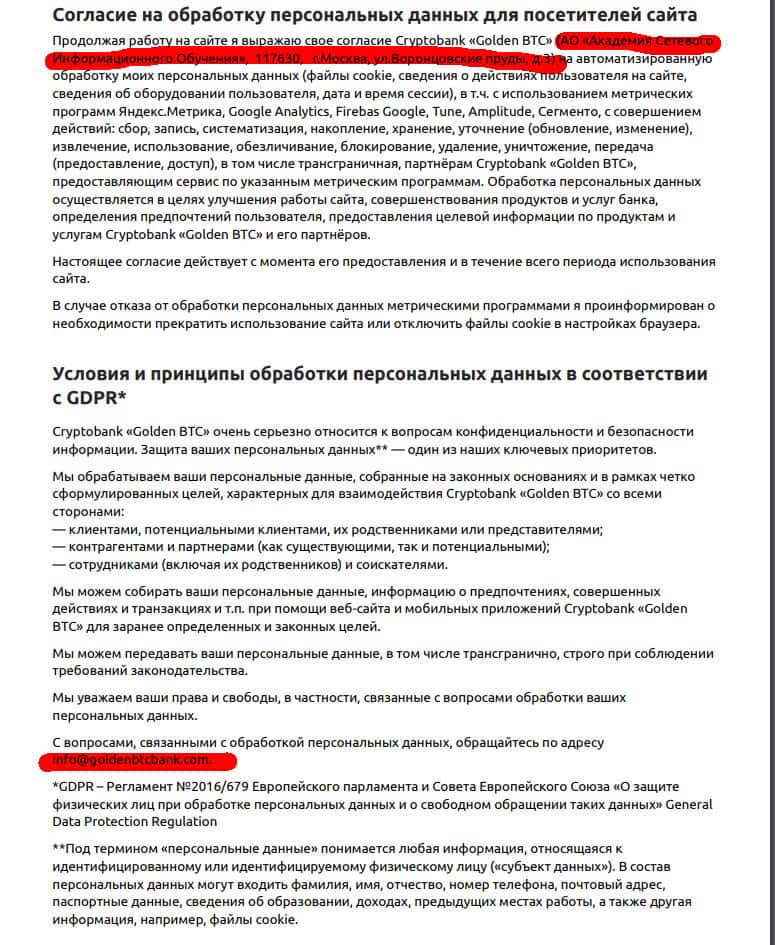 Политика конфиденциальности жулья 1 БТЦ Брокер