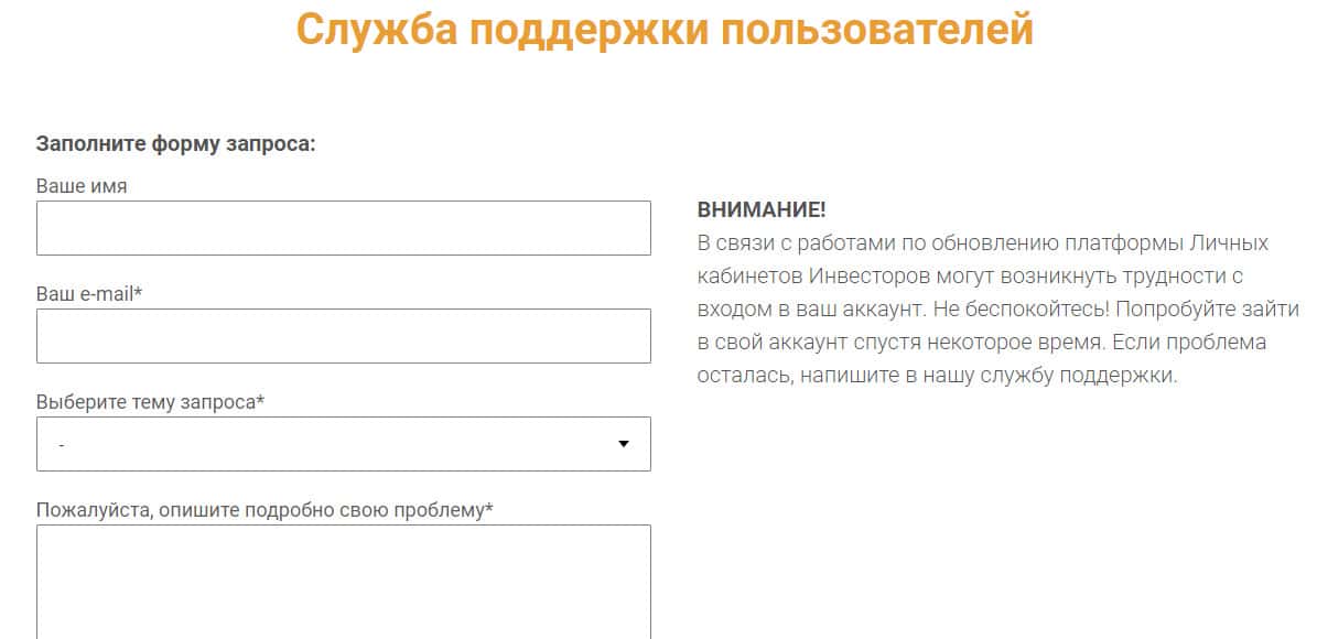 Также на одном из дополнительных сайтов, удается найти форму для обратной связи, которая подписана как служба поддержки пользователей. Через такое вряд ли удастся связаться очень быстро с аферистами 1BTCBroker, а решить какой-то финансовый вопрос так подавно. Кстати так еще можно собирать базу потенциальных клиентов.