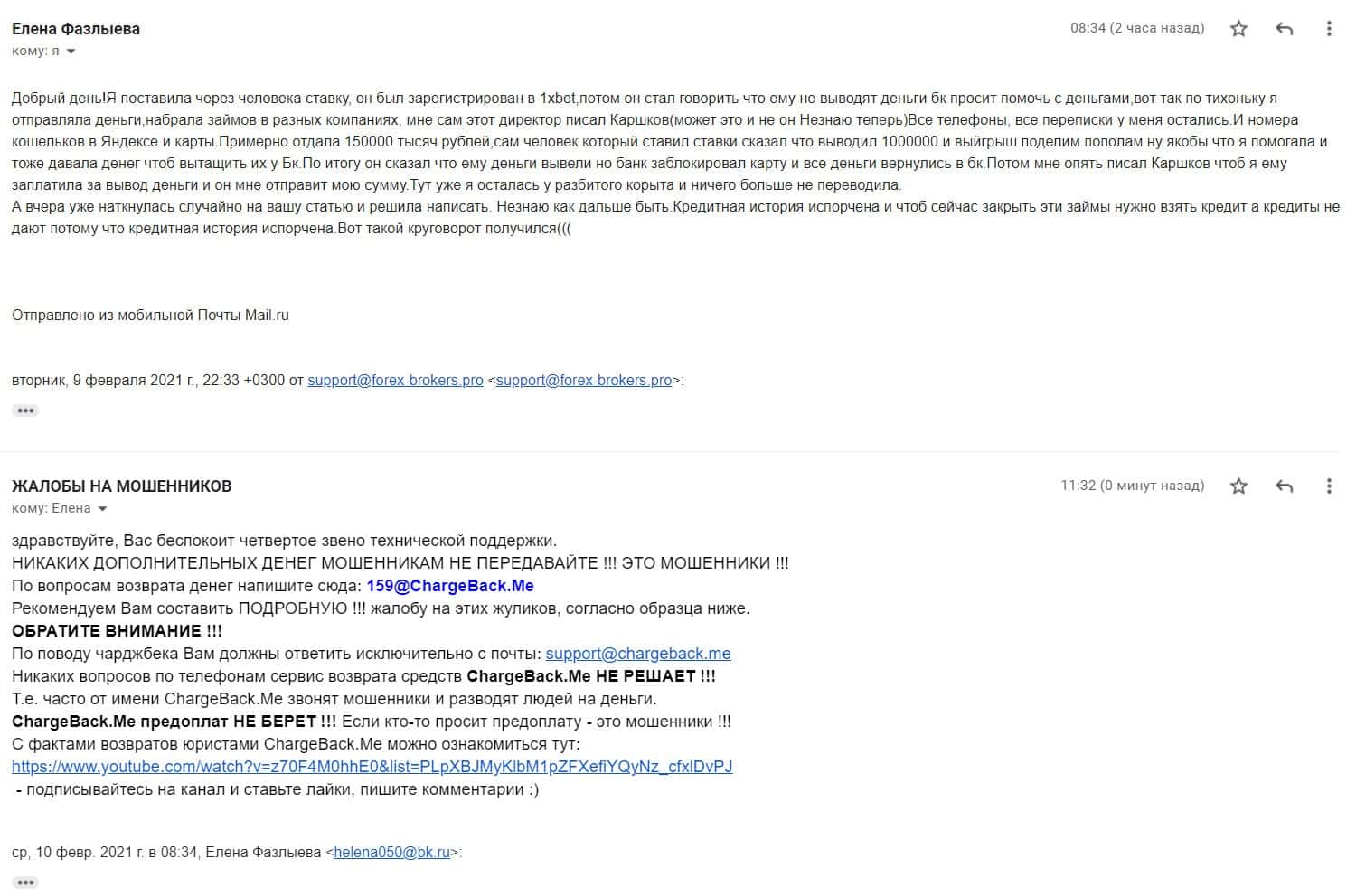 Далее предоставлена жалоба на мошенническую компанию 1 Икс Бет, которая развела клиента на немалую сумму денежных средств.
