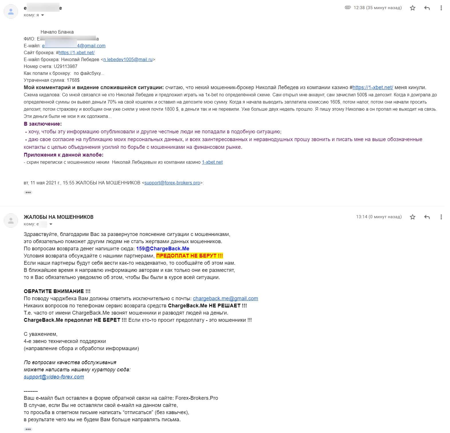 - Жалоба на лохотронщиков 1 Икс Бет, которые обманули клиента на деньги
