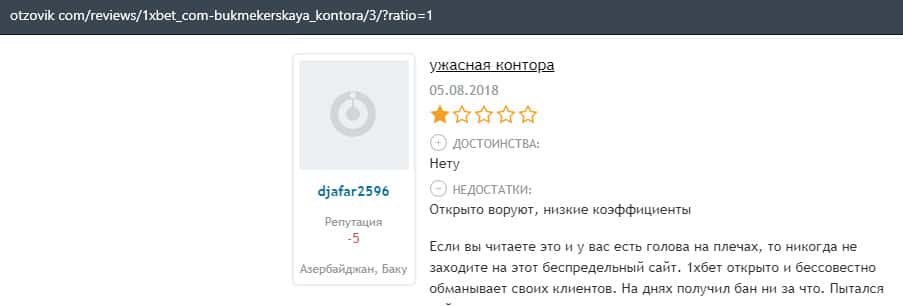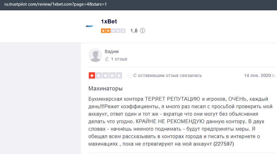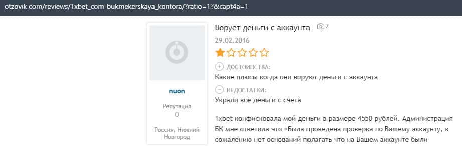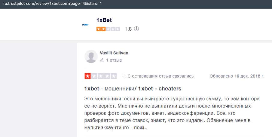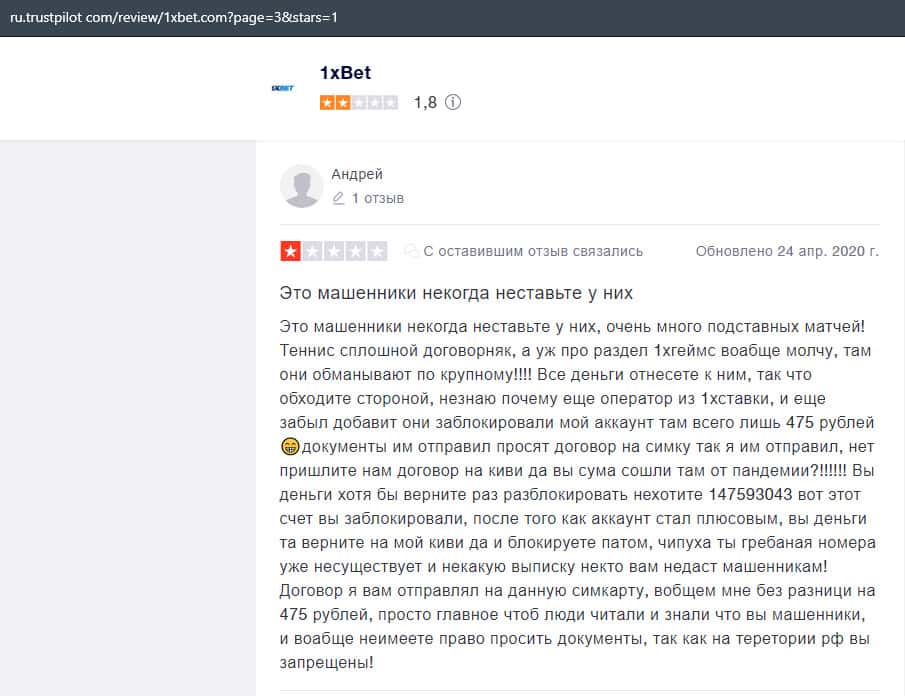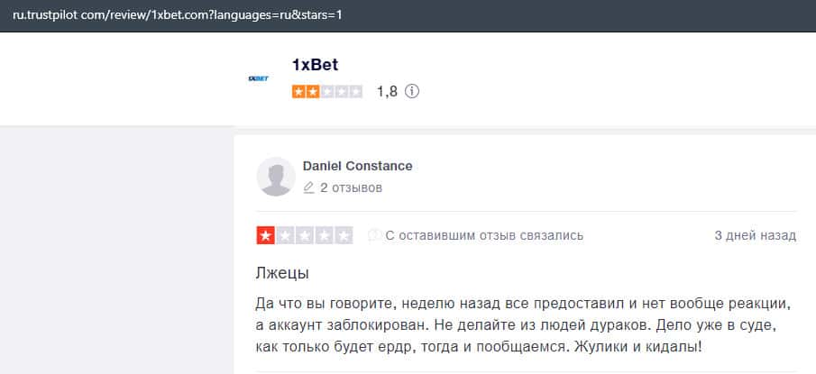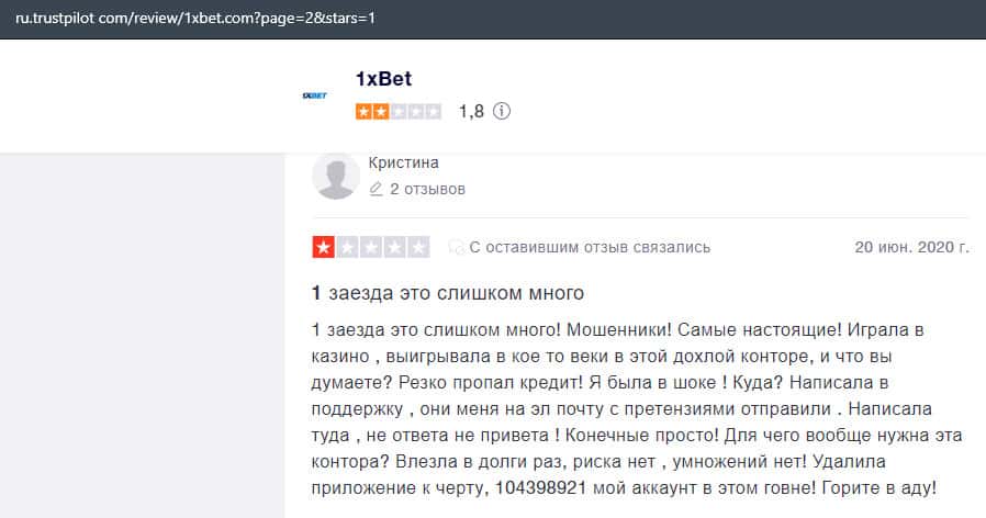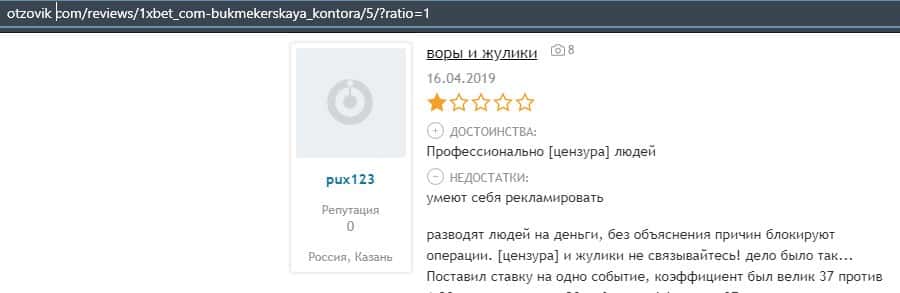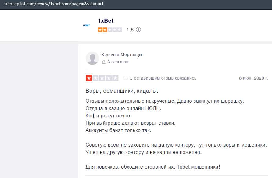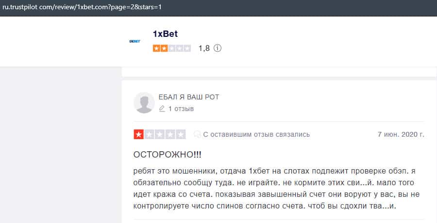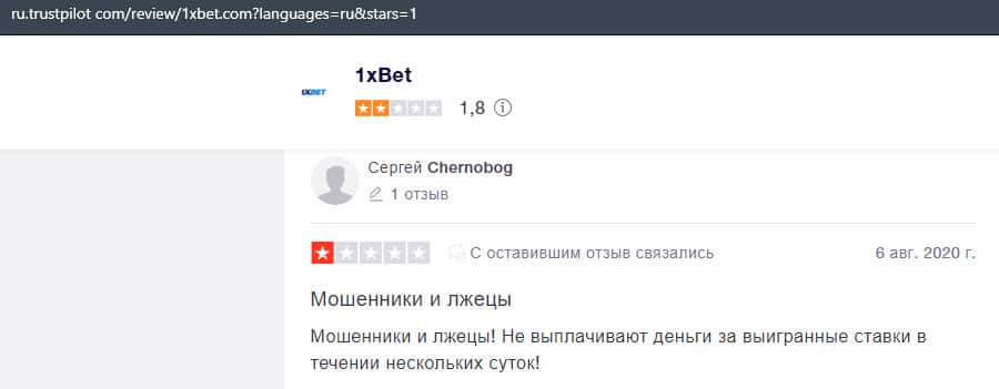 В лохотронской организации 1xBet очень много минусов, и соответственно на них уже написано множество жалоб, где указаны факты мошенничества со стороны аферистов.