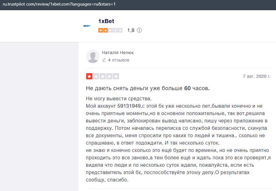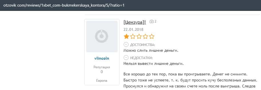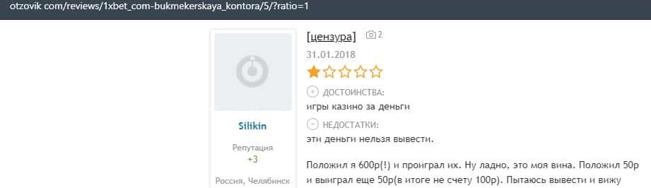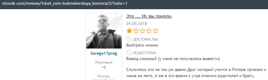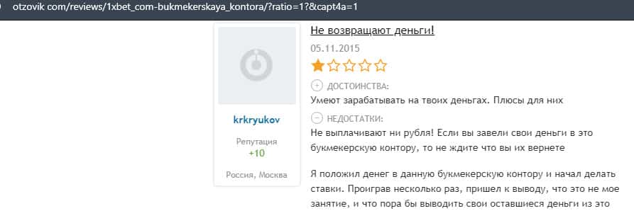 Очередной пользователь сети уверяет, что вывести деньги с конторы 1 Икс Бет нет возможности, так как ваши деньги, это основной источник дохода.