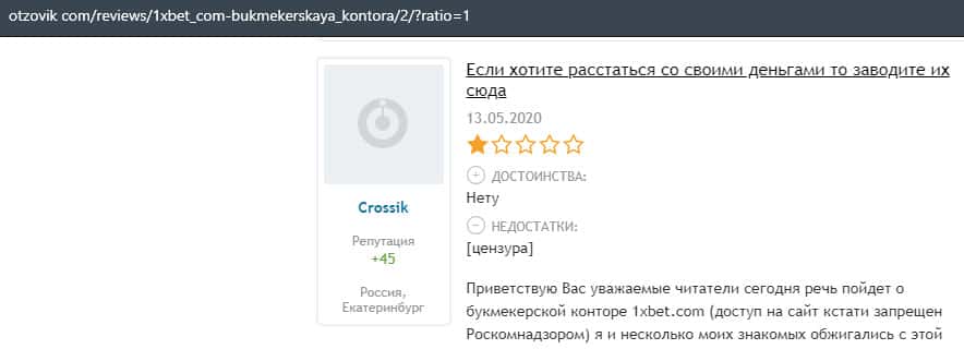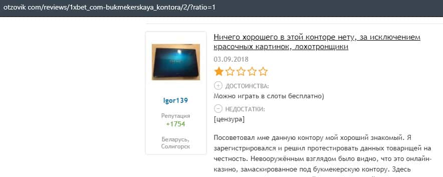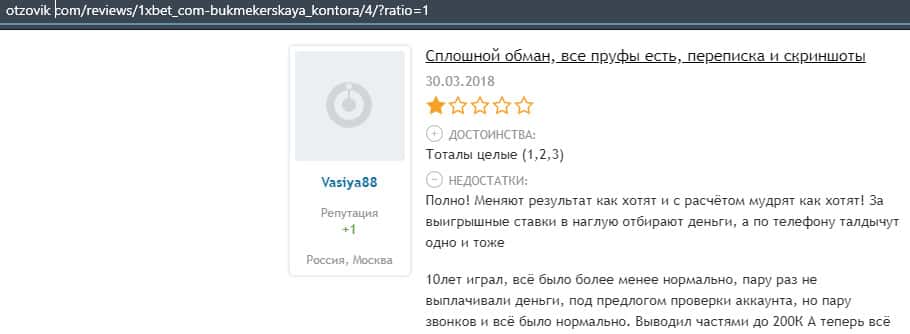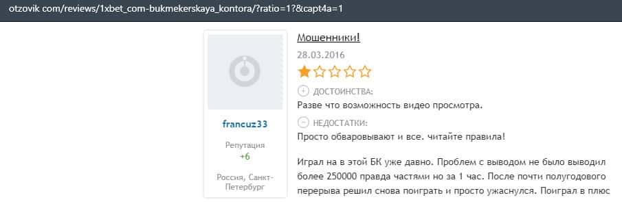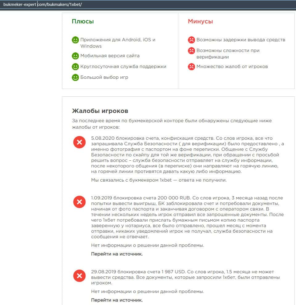 Мошенники 1 Икс Бет имеют очень много минусов и их в основном могут сразу разглядеть только профессионалы. Неопытные же игроки попадутся в эту ловушку.