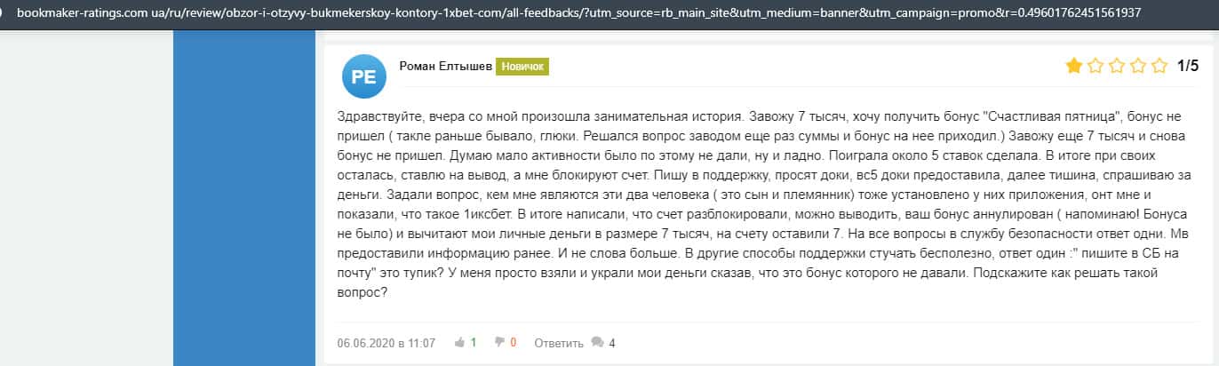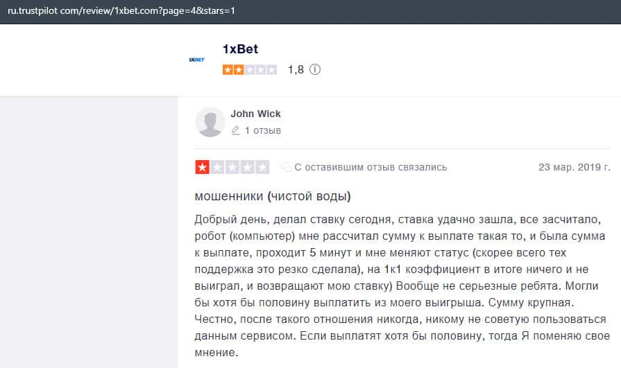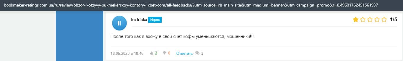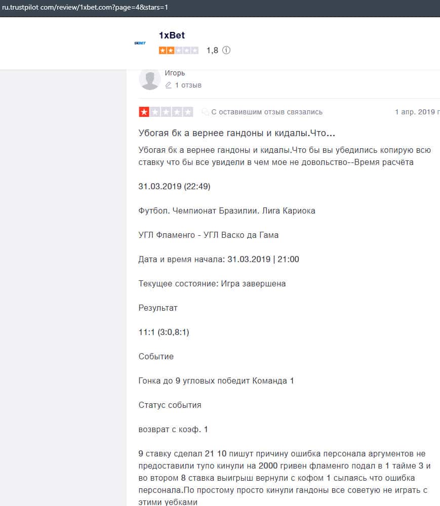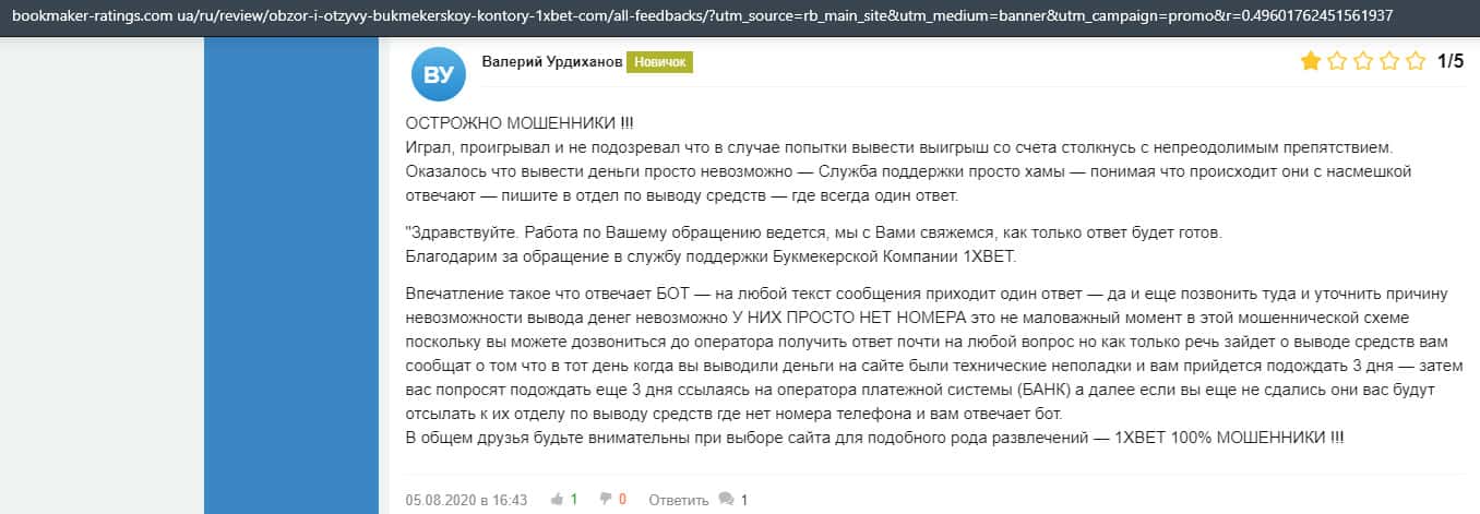 Очередная жалоба на обманщиков 1 Икс Бет