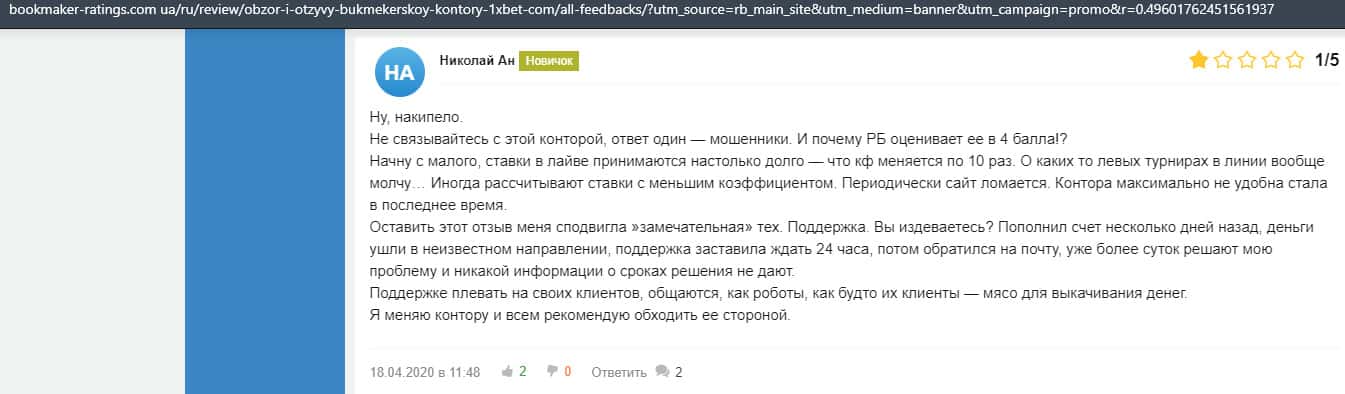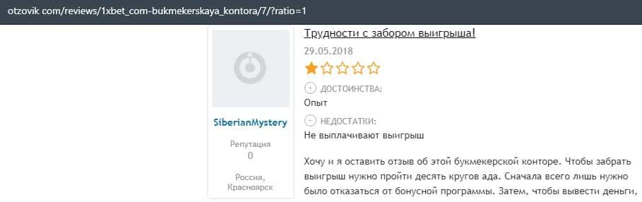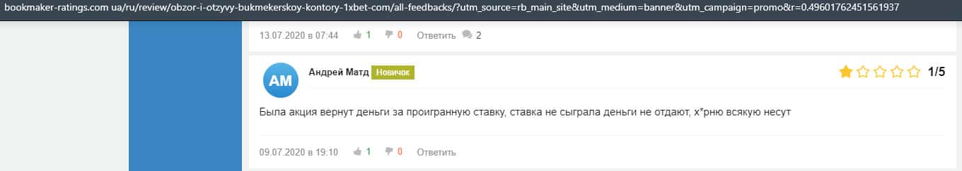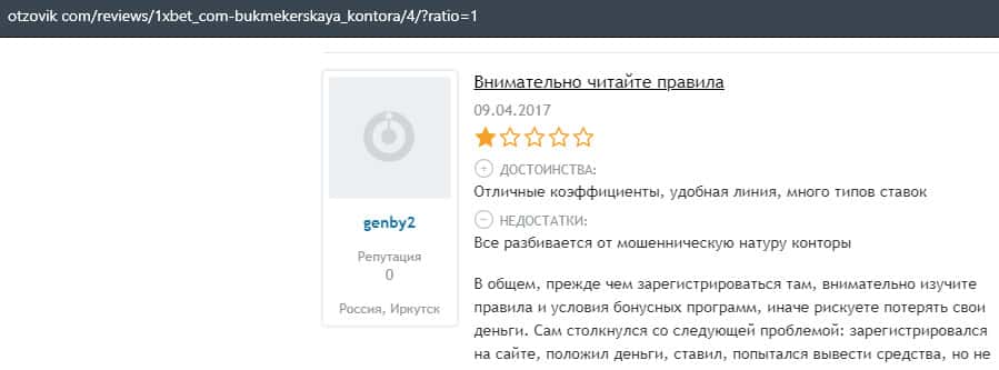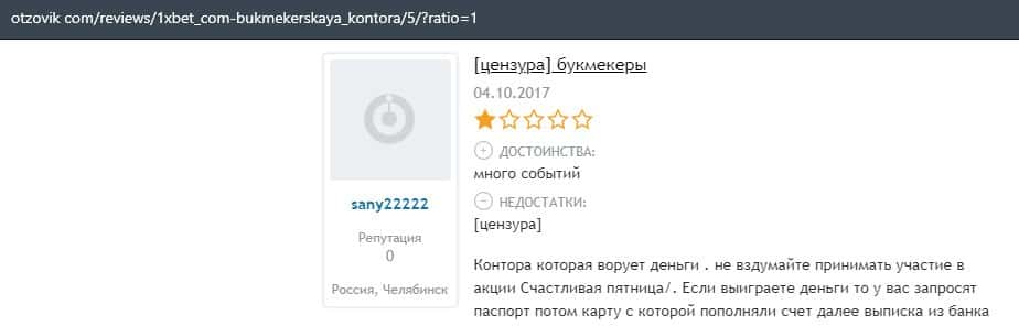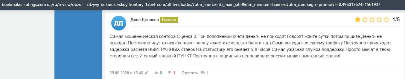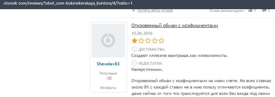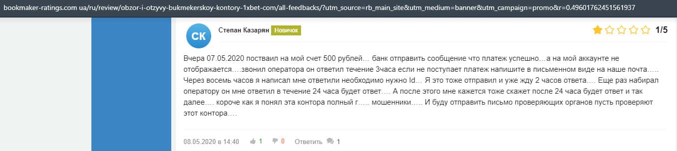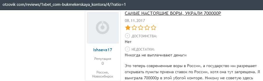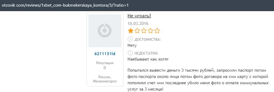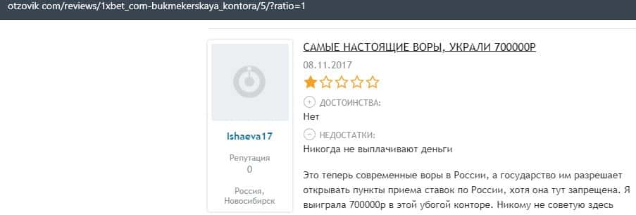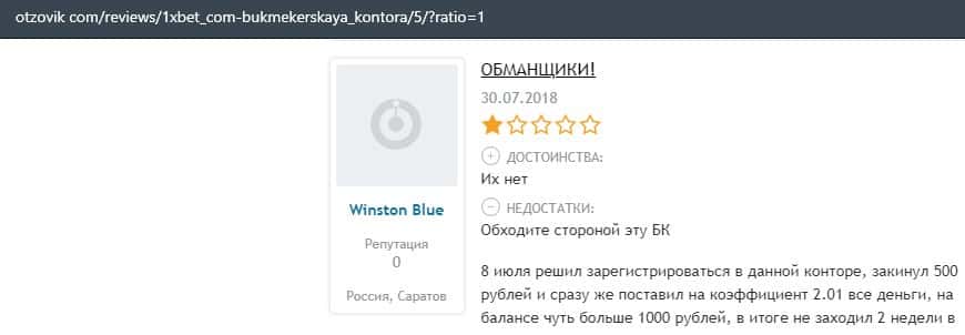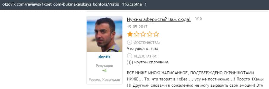 - Очередная жалоба на обманщиков 1 Икс Бет