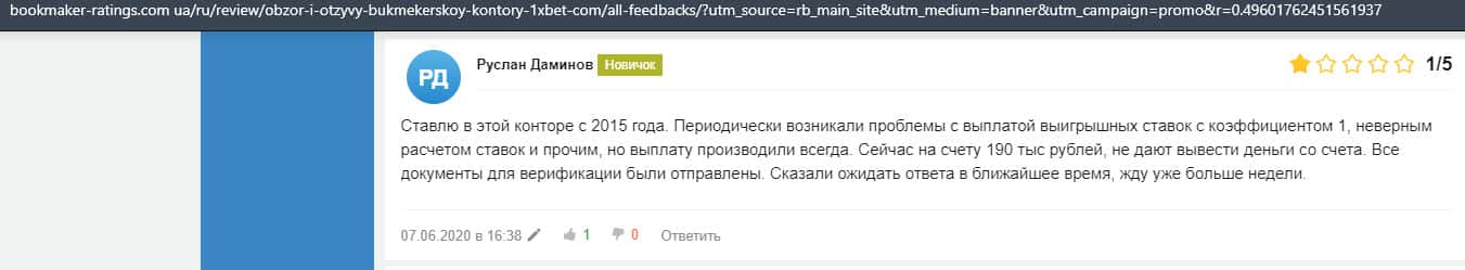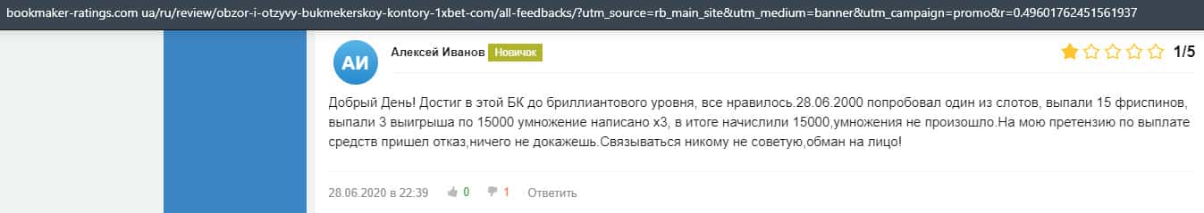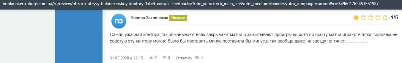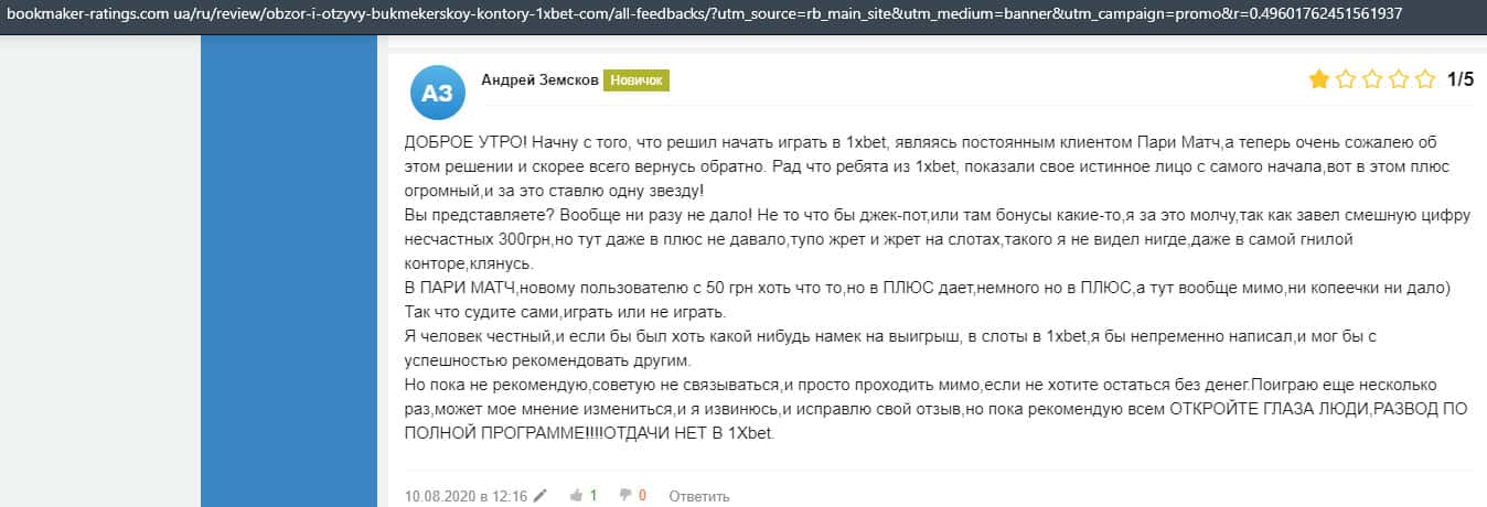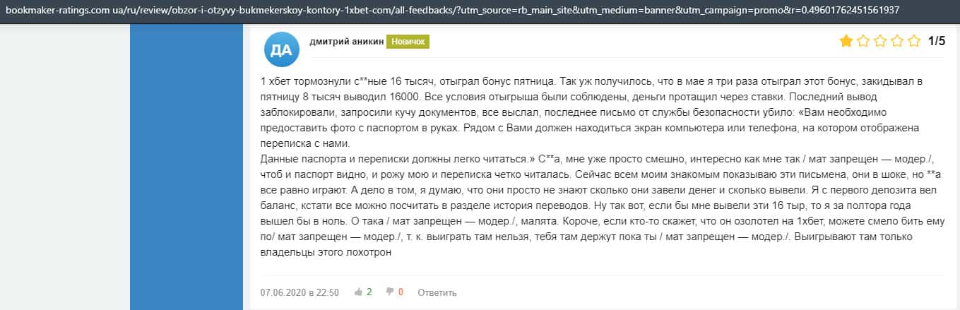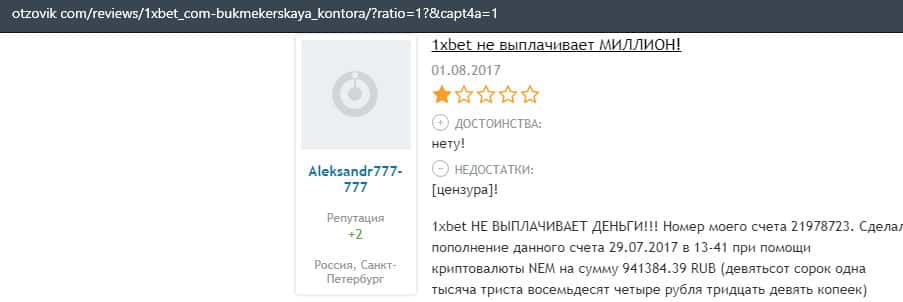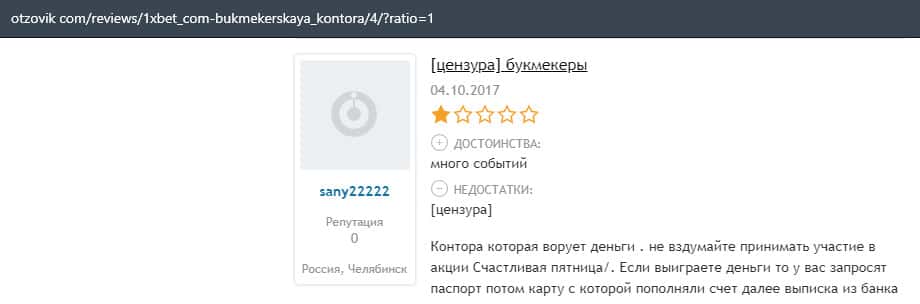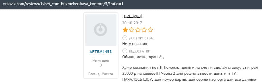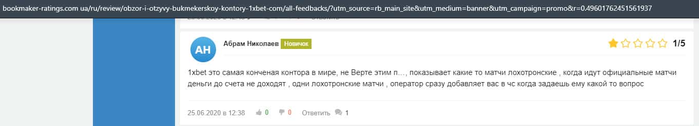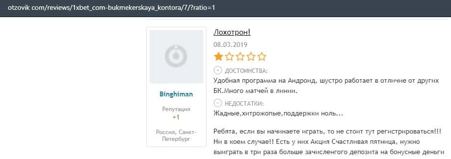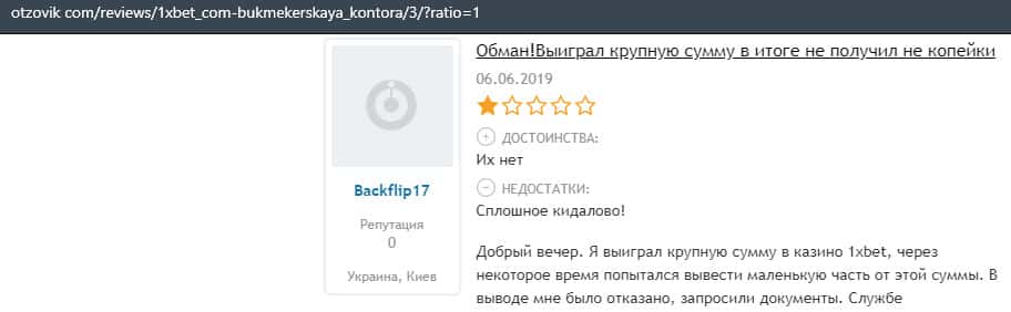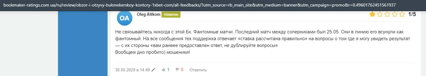 - Очередная жалоба на обманщиков 1 Икс Бет