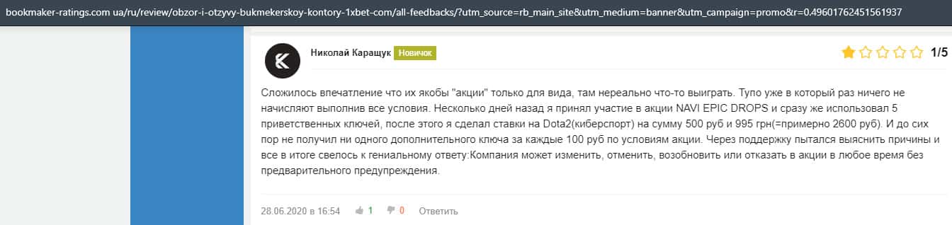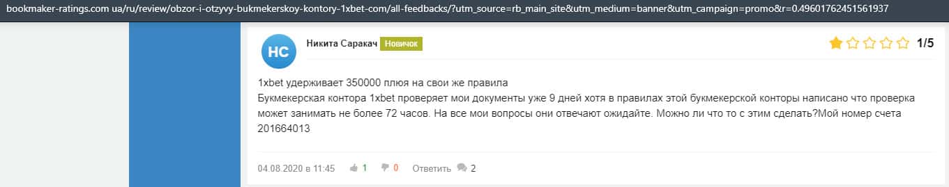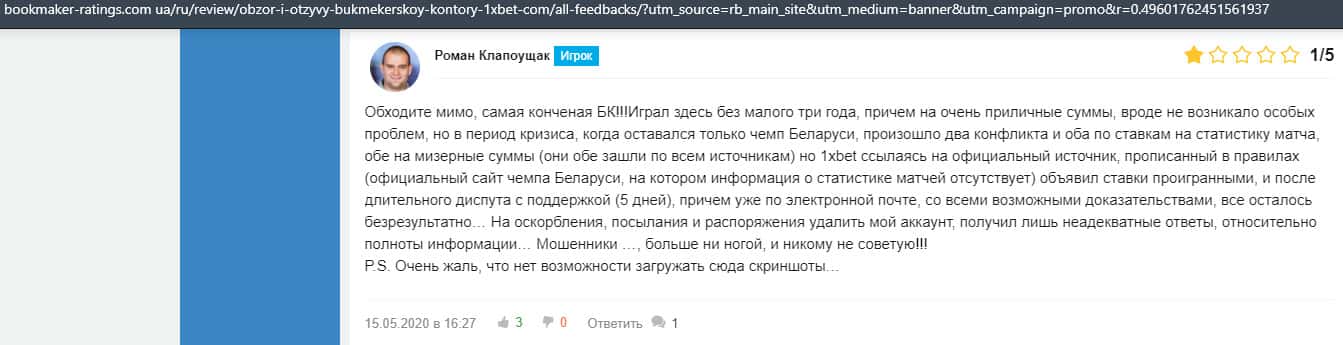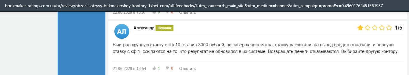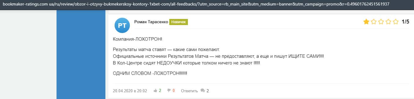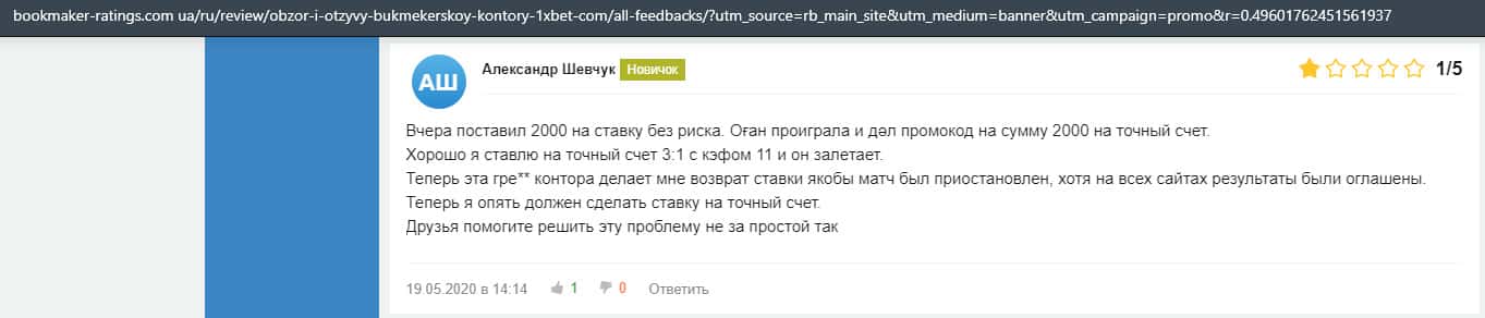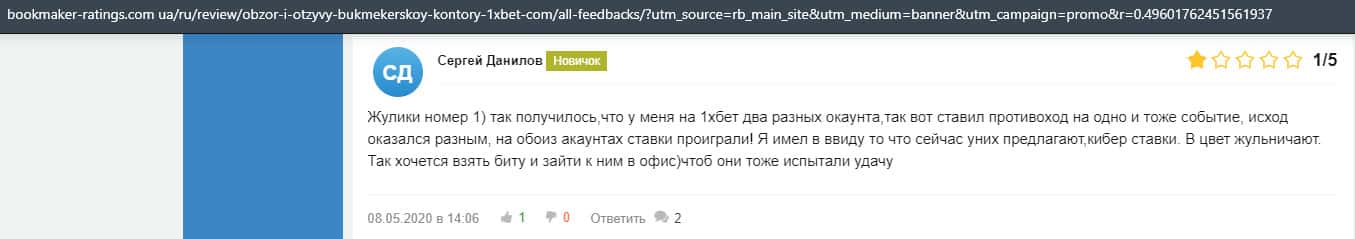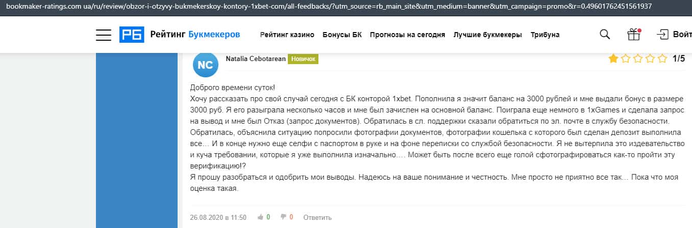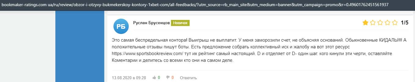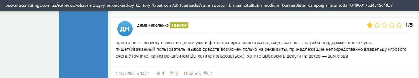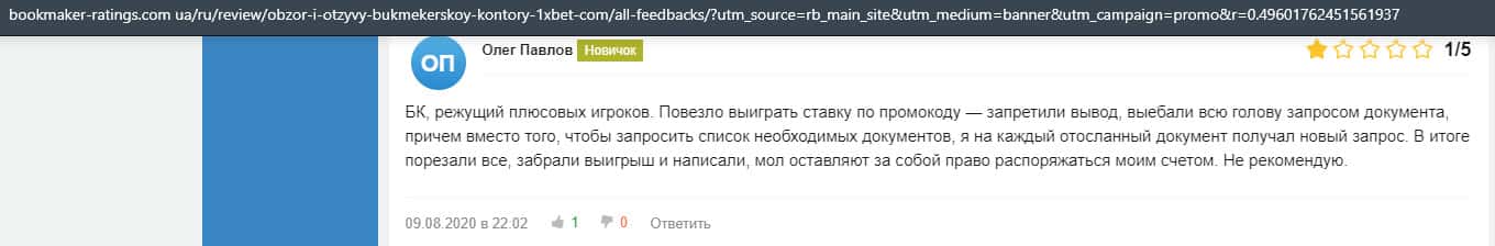 - Очередная жалоба на обманщиков 1 Икс Бет