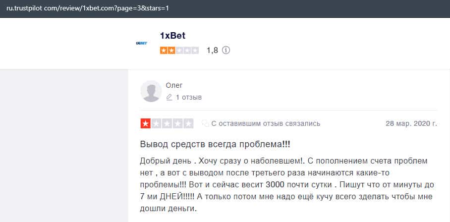 С выводом средств в конторе 1 Икс Бет постоянно какие-то проблемы, вот даже здесь человек не может добиться вывести деньги в размере 3000 рублей.