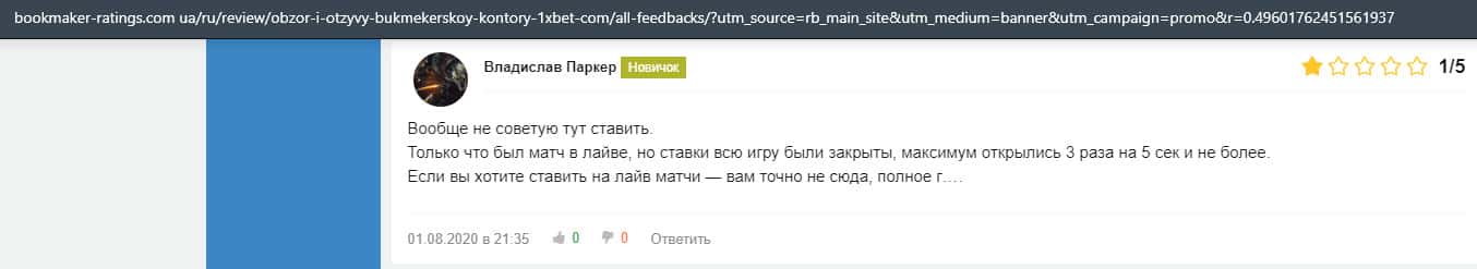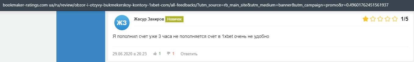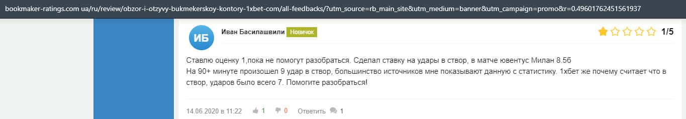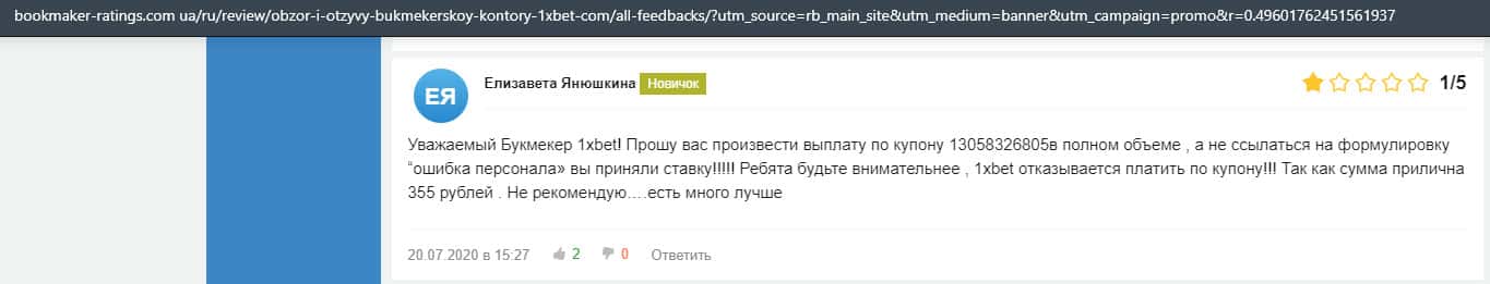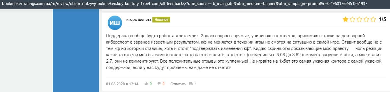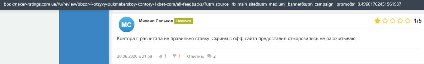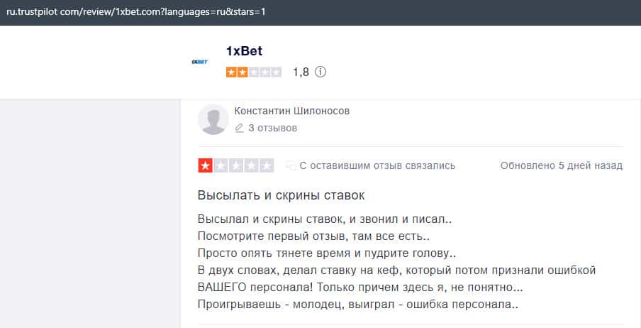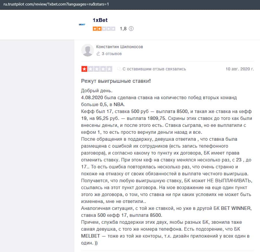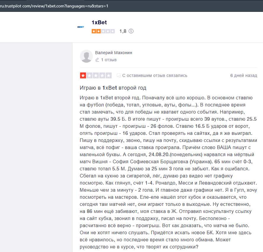 Жалоба на букмекерскую контору 1 Икс Бет