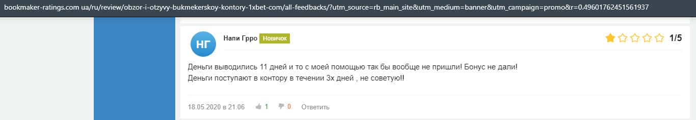 А кому-то повезло немного больше и деньги пришли спустя 11 дней. Сроки довольно большие и поэтому не стоит связываться с аферой 1 Икс Бет.