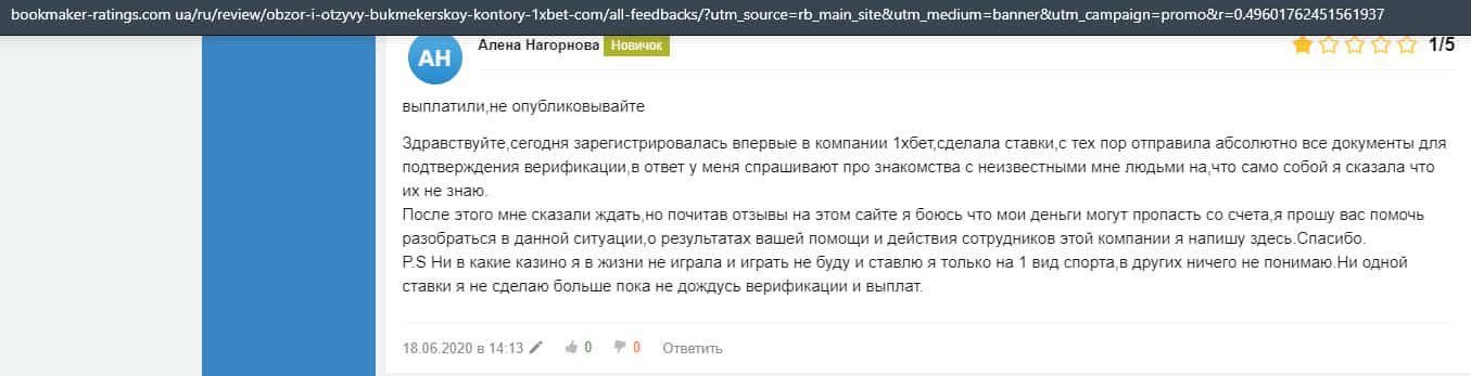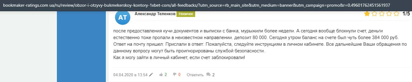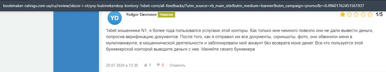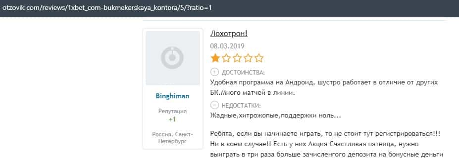 - Отзывы клиентов о лохотроне 1 Икс Бет