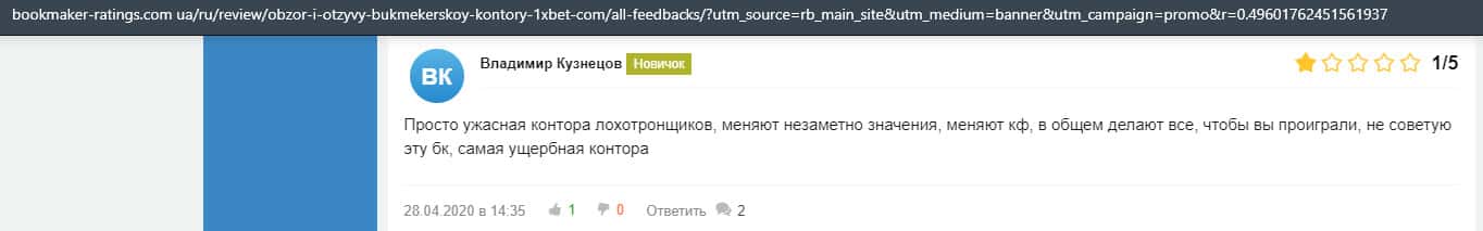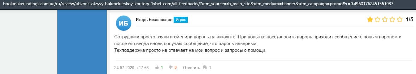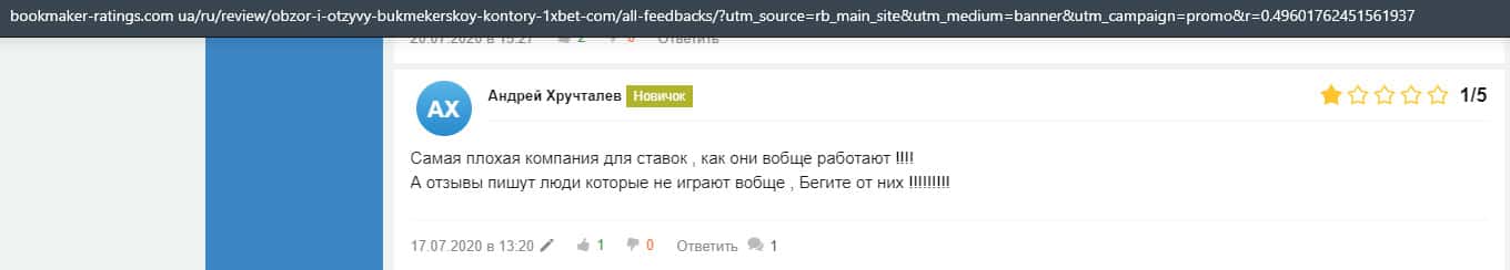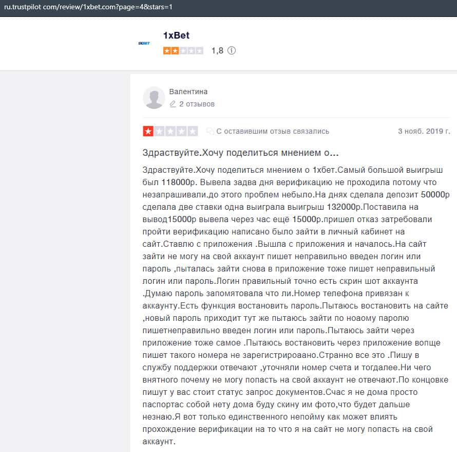 Отзывы клиентов о лохотроне 1 Икс Бет