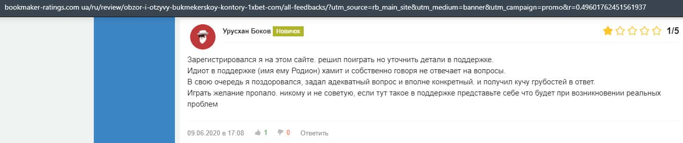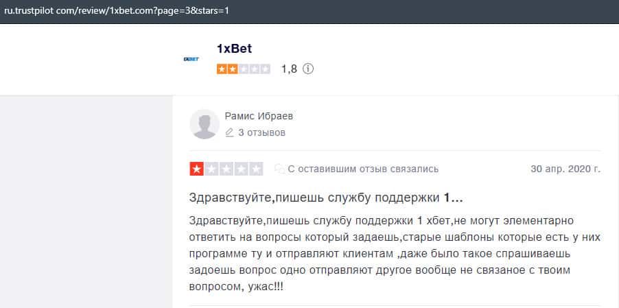 - Плохая работа службы поддержки конторы 1xBet