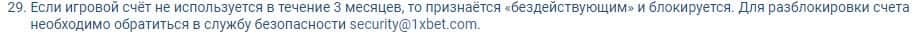 Шулерская организация 1xBet вправе заблокировать счет клиента, если они посчитают, что он недостаточно активно используется, даже если там лежат у него деньги.