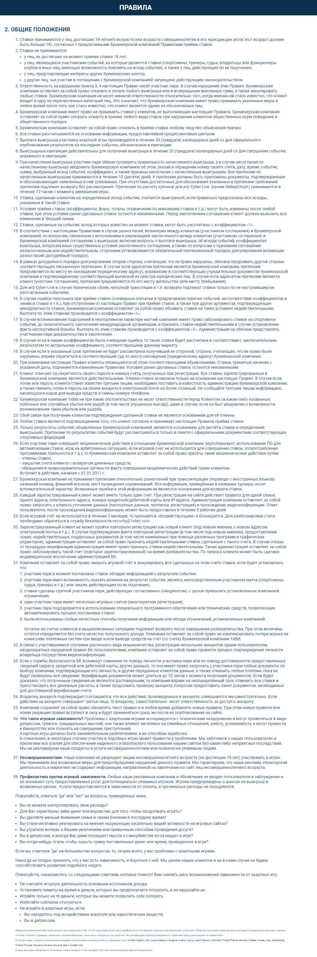 - Клиентское соглашение мошенников 1xBet