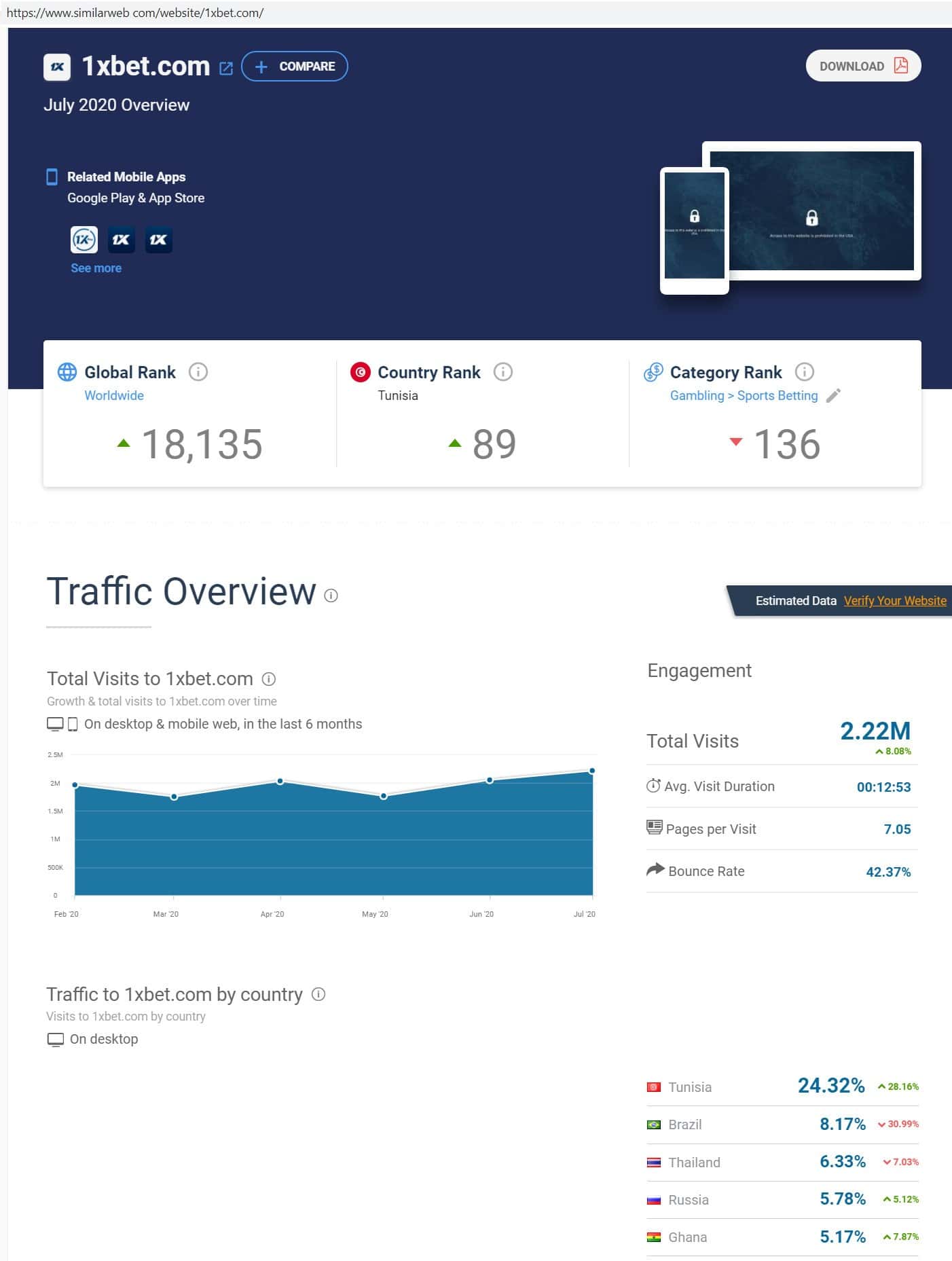 Чтобы узнать источники трафика, мы проверили сайт конторы 1xBet по ресурсу similarweb com. Как оказалось основной трафик идет из России так как грабят население этой страны.
