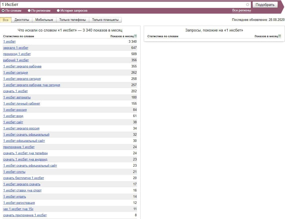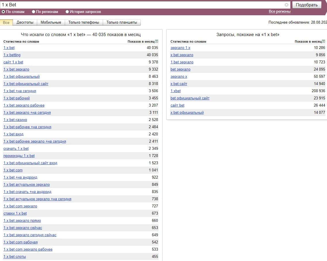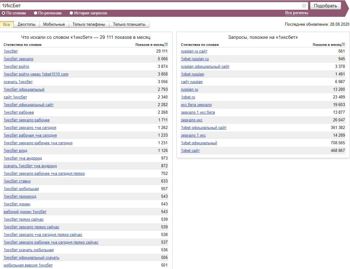 А вот бренд "1 xBet" набрал, по версии Яндекс Вордстат свыше 200 000 показов за последний месяц, что является большим показателем.