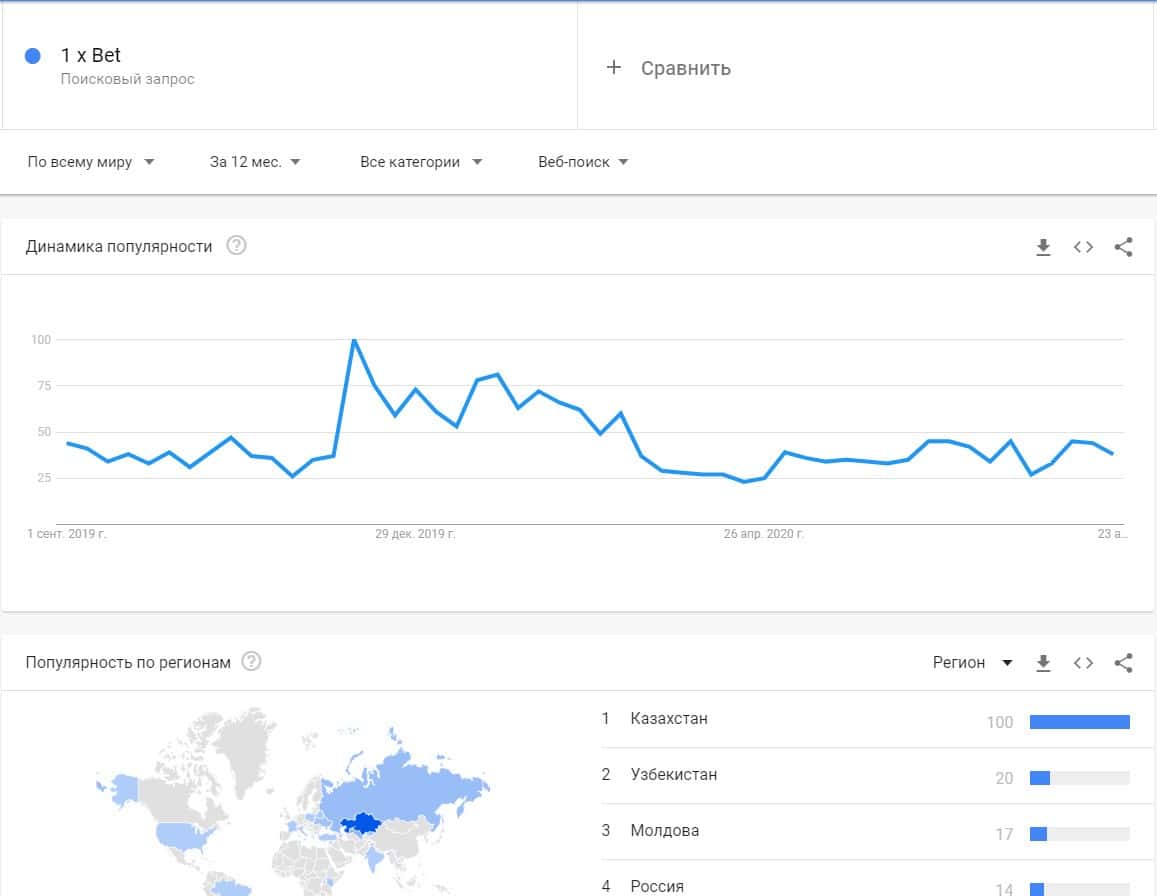 В некоторых ситуациях данный лохотрон запрашивают по бренду "1 x Bet" и в основном показы исходят из Казахстана, Узбекистана, Молдовы и России.