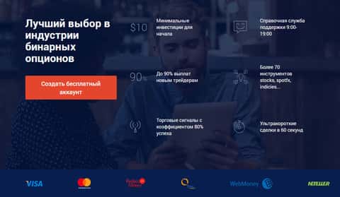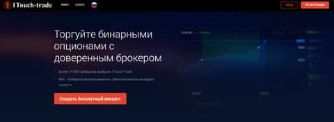 Начинается сайт мошенников 1 Touch Trade с типичной шапки сайта, в которой аферисты 1 Точ Трейд предлагают всем посетителям открыть у них счет под предлогом довольно сомнительных преимуществ и торговли бинарными опционами. На изображении, расположенном ниже, вы можете увидеть начало сайта мошенников 1 Touch Trade.