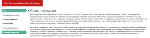 Условия сотрудничества с лохотроном 1 Точ Трейд начинаются с информации о том, что клиент соглашается с данными условиями аферистов 1 Touch Trade фактом регистрации на сайте лохотрона. На изображении, расположенном ниже, вы можете увидеть начало клиентского соглашения аферистов 1 Точ Трейд.