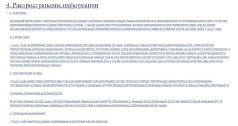 Политика конфиденциальности лохотрона 1 Touch Trade
