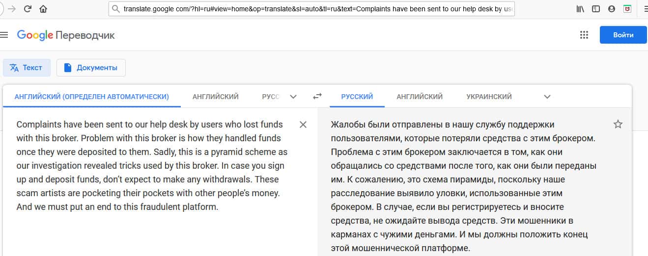 перевод отзыва на translate.google com