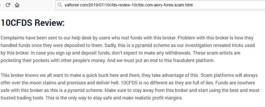Англоязычные пользователи сразу поняли, что 10CFDs - обычная финансовая пирамида, которая на деле не оказывает никаких услуг, кроме как сбор средств у людей и потом их транжирят. Вот и все, чем по факту они занимаются. Это очередной брокер-мошенник, который обманывает своих клиентов.
