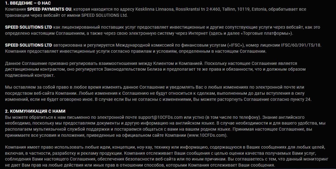 Клиентское соглашение 10CFDs