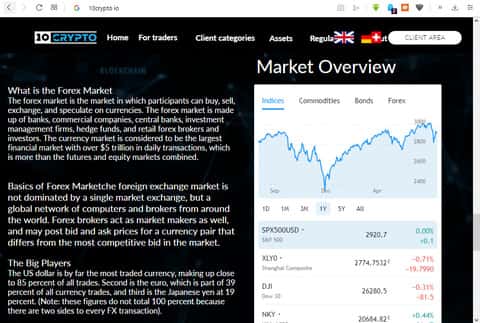 На официальном сайте 10 Крипто внизу главной страницы нам предлагают познакомиться с рынком торговли. Что это значит? Это значит то, что данная контора мошенников даже не надеится на то, что до этого дойдут проффесиональные трейдеры, они уже поймут, что это лохотрон и закроют страничку, а те кто новичок или лох - будет листать дальше, всё больше доверяя этим мошенникам-ворам.