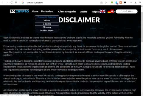Образовательная вкладка на сайте сервиса-лохотрона 10 Крипто10 Крипто знакомит своих клиентов с мировым рынком торговли