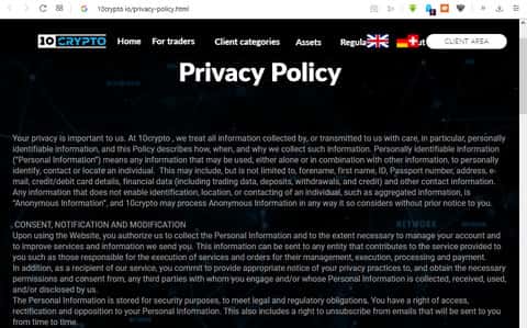Лазейки 10 Крипто в политике конфиденциальностиИнформационный блок на главной странице сайта организации 10 Крипто