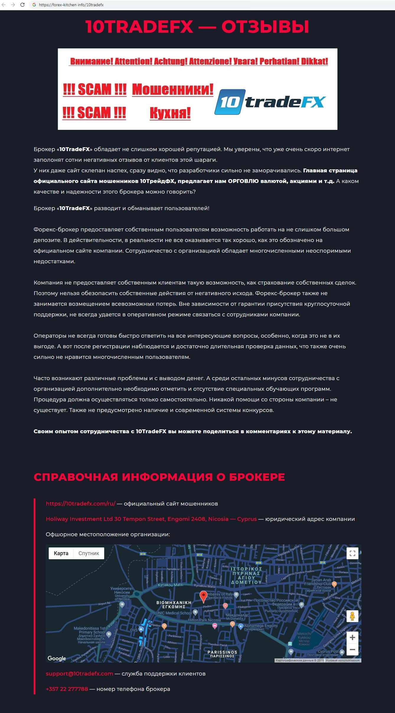 Информация об аферистах 10 Трейд ФХ на сайте forex-kitchen info