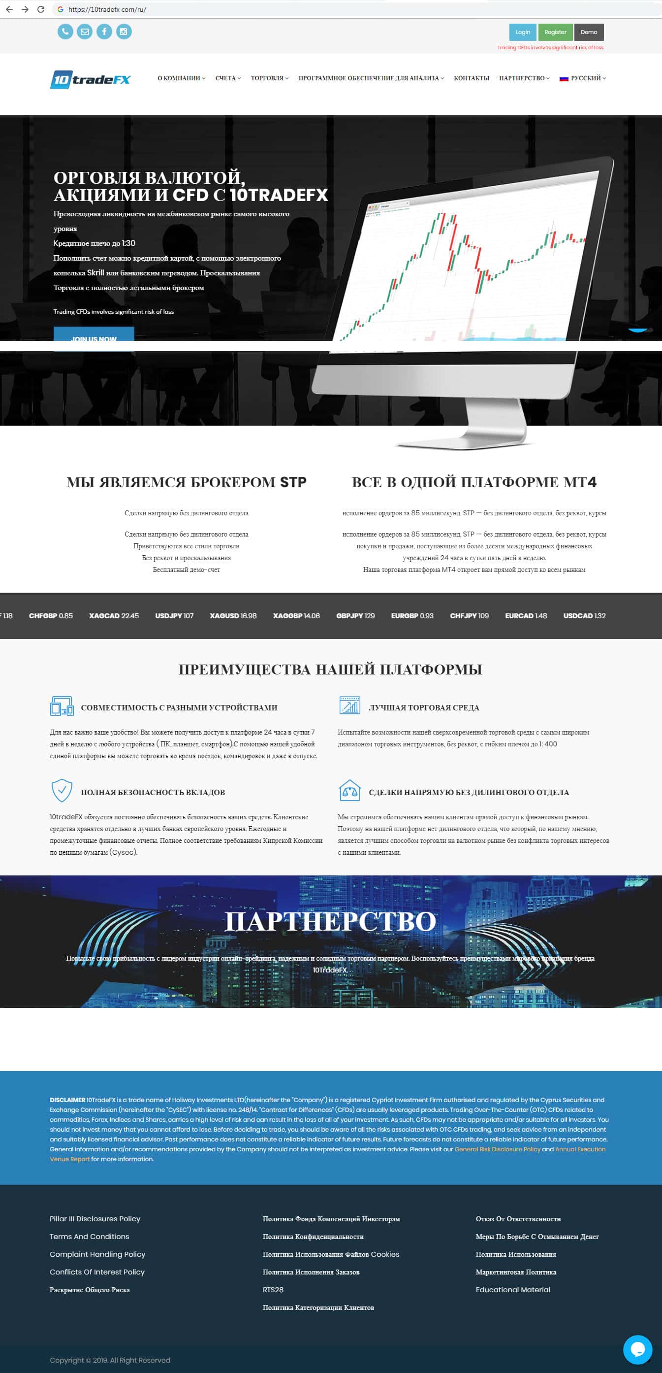 10Trade FX - мошеннический брокер Форекс, который рассчитан на втягивание наивных пользователей всемирной паутины в данный интернет-лохотрон. Данная организация находится на Кипре в офшорном госсударстве, где зарегистрировано множество сомнительных лиц. Не рекомендуем связываться с организацией аферистов 10 Трейд ФХ !!!