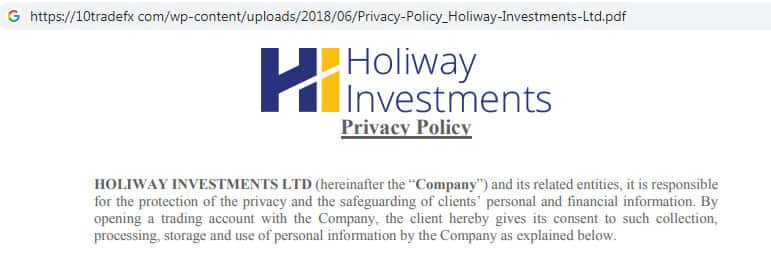 Политика конфиденциальности шулеров 10 Трейд ФХ