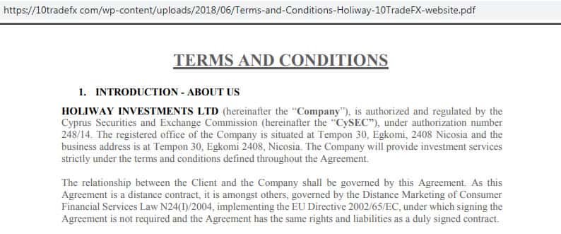 Клиентское соглашение интернет-конторы 10 Trade FX