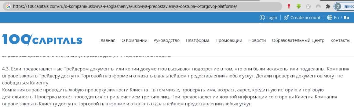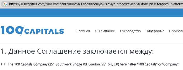 - Критический обзор клиентского соглашения, предлагаемого мошенниками из 100Капиталс своим клиентам