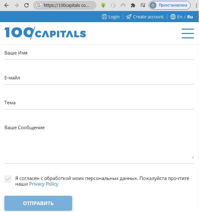 - Знакомство с главной страницей сайта мошеннической конторы брокера 100Капиталс