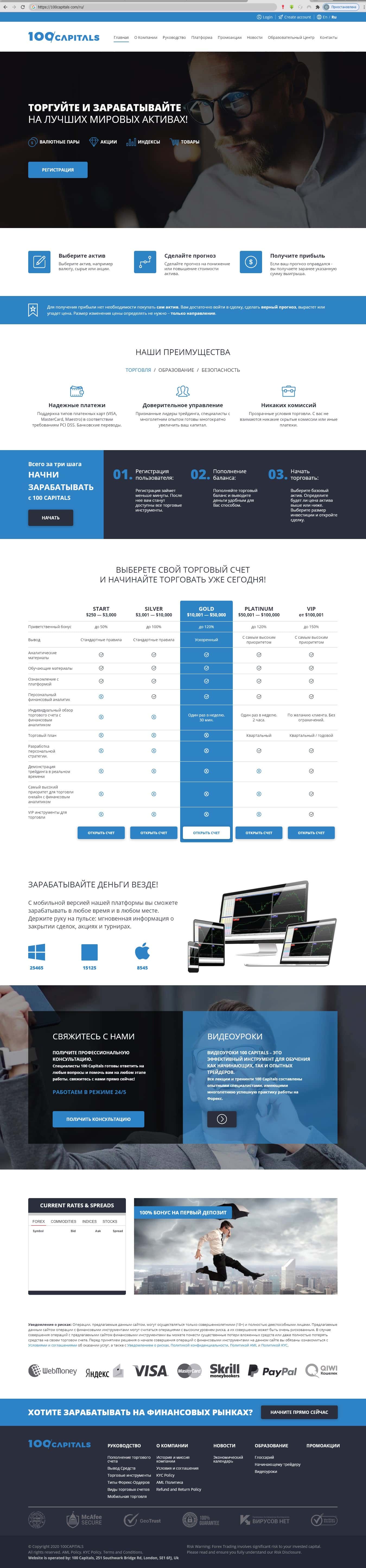 100capitals com - сайт мошеннического проекта брокерской конторы 100 Капиталс