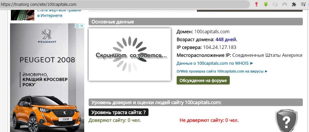 - Выводы портала "Доверие в сети" на основе анализа характеристик сайта аферистов из 100Капиталс