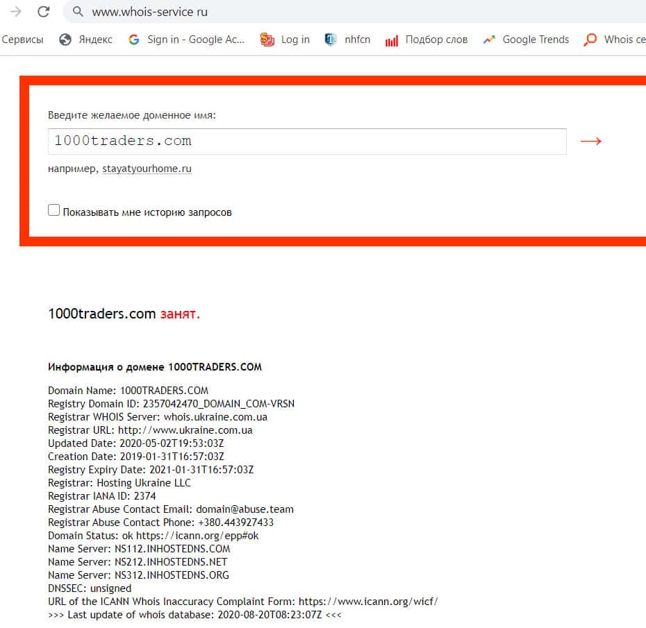 - Кому принадлежит доменное имя сайта 1000traders com?