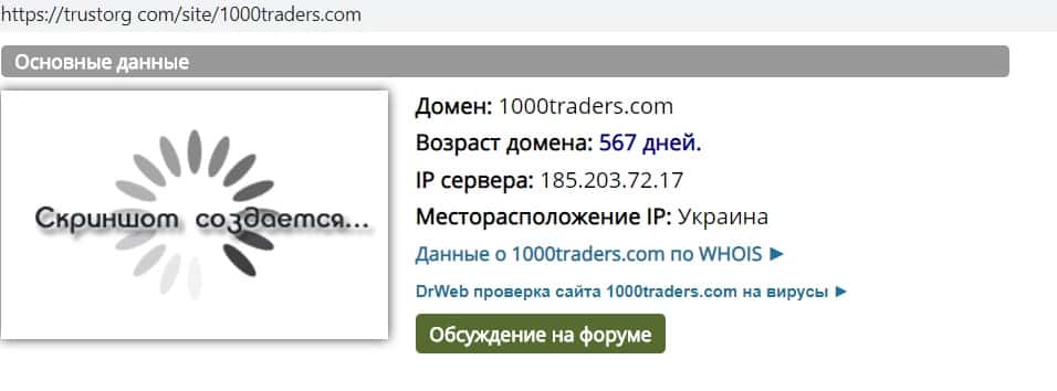 Возраст доменного имени сайта 1000traders com составляет 567 дней. Контора достаточно новая, поэтому доверять ей нет смысла, плюс и другие доказательства мошенничества.