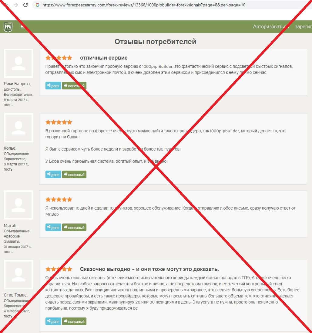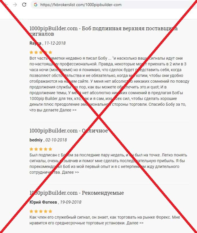 Аферисты 1000 Пип Буилдер наполняют интернет заказными отзывами о себе
