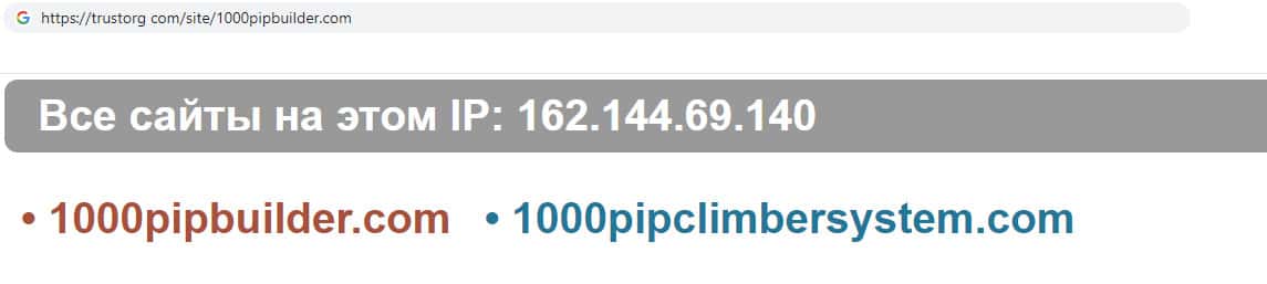 Недоконтора 1000 Пип Буилдер имеет аналоговый сайт, с практически таким же названием, и находятся они на одном айпи. Эту информацию удалось узнать благодаря сайту "Доверие в Сети". Так же странно, что об этой конторе на сайте ничего нет, буд то он недавно появился, и не проходил никаких проверок.