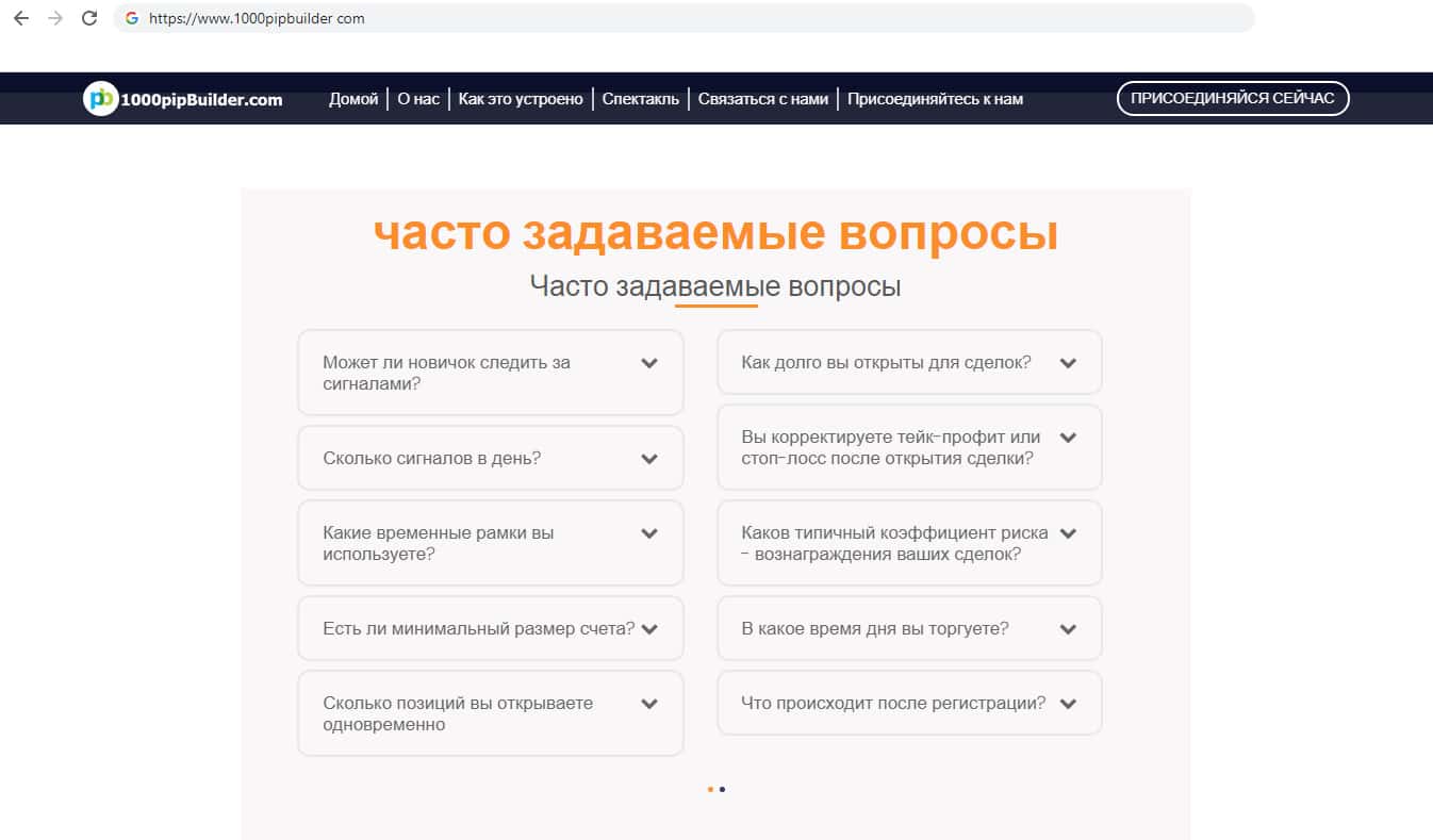 После, фирма махинаторов опубликовала вопросы, которые им якобы часто задают клиенты, и что бы постоянно на них не отвечать. разводилы 1000PipBuilder Com сделали пункт с готовыми ответами на них. Компания хочет ограничить общение с клиентами, так как не хочет постоянно отвечать на постоянные вопросы.