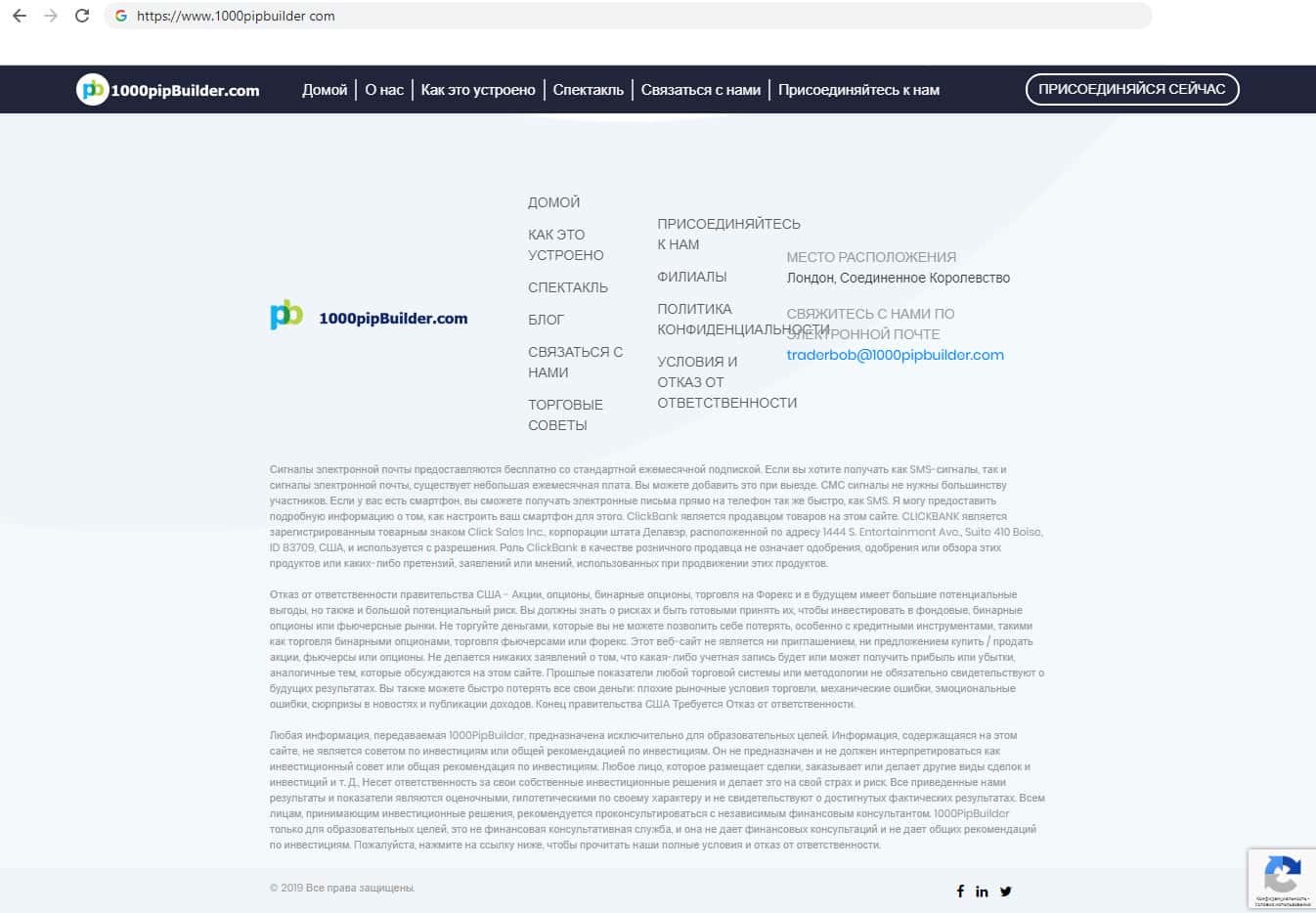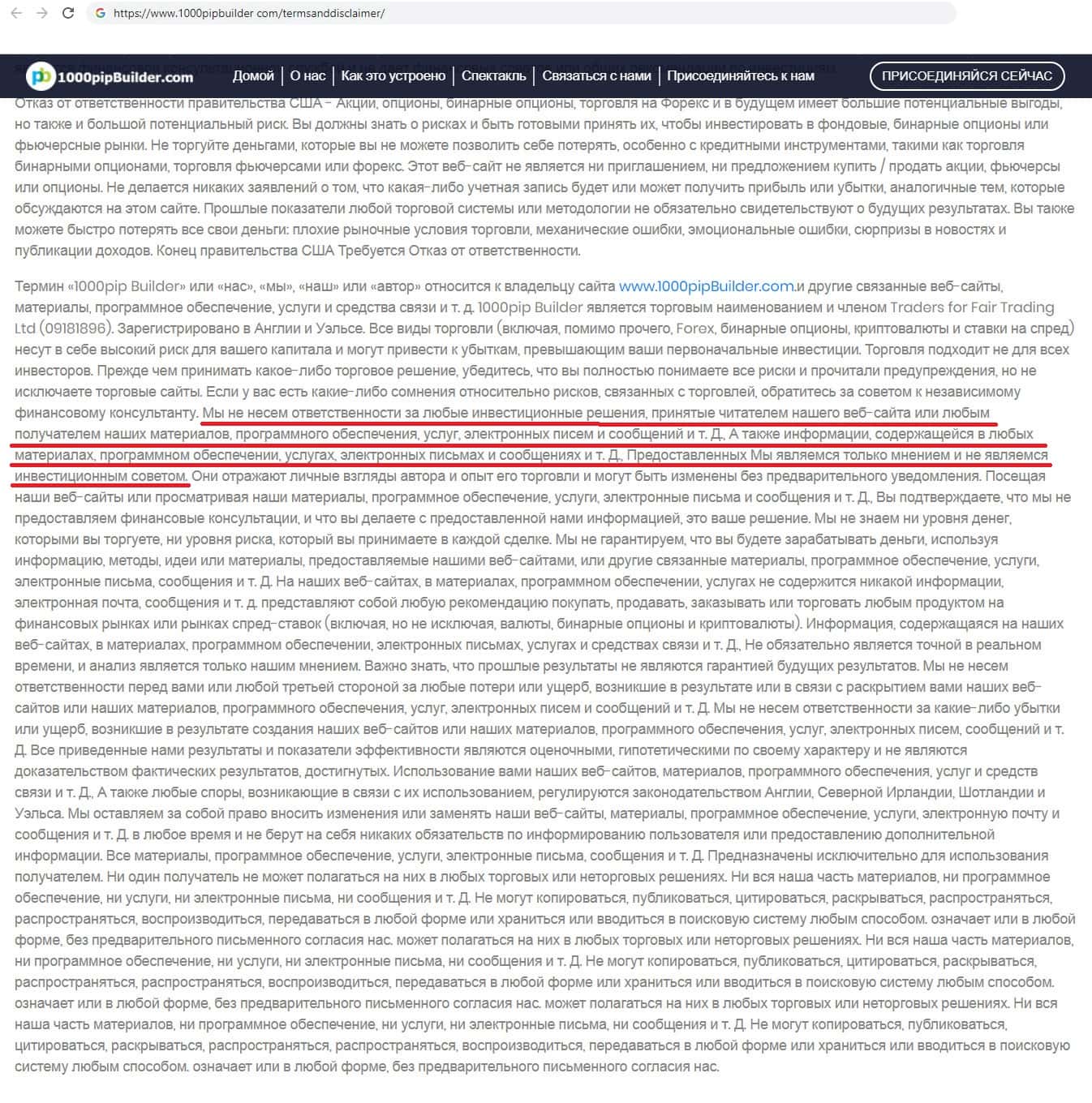 Мошенники 1000 Пип Буилдер отказываются от ответственности за свои услуги